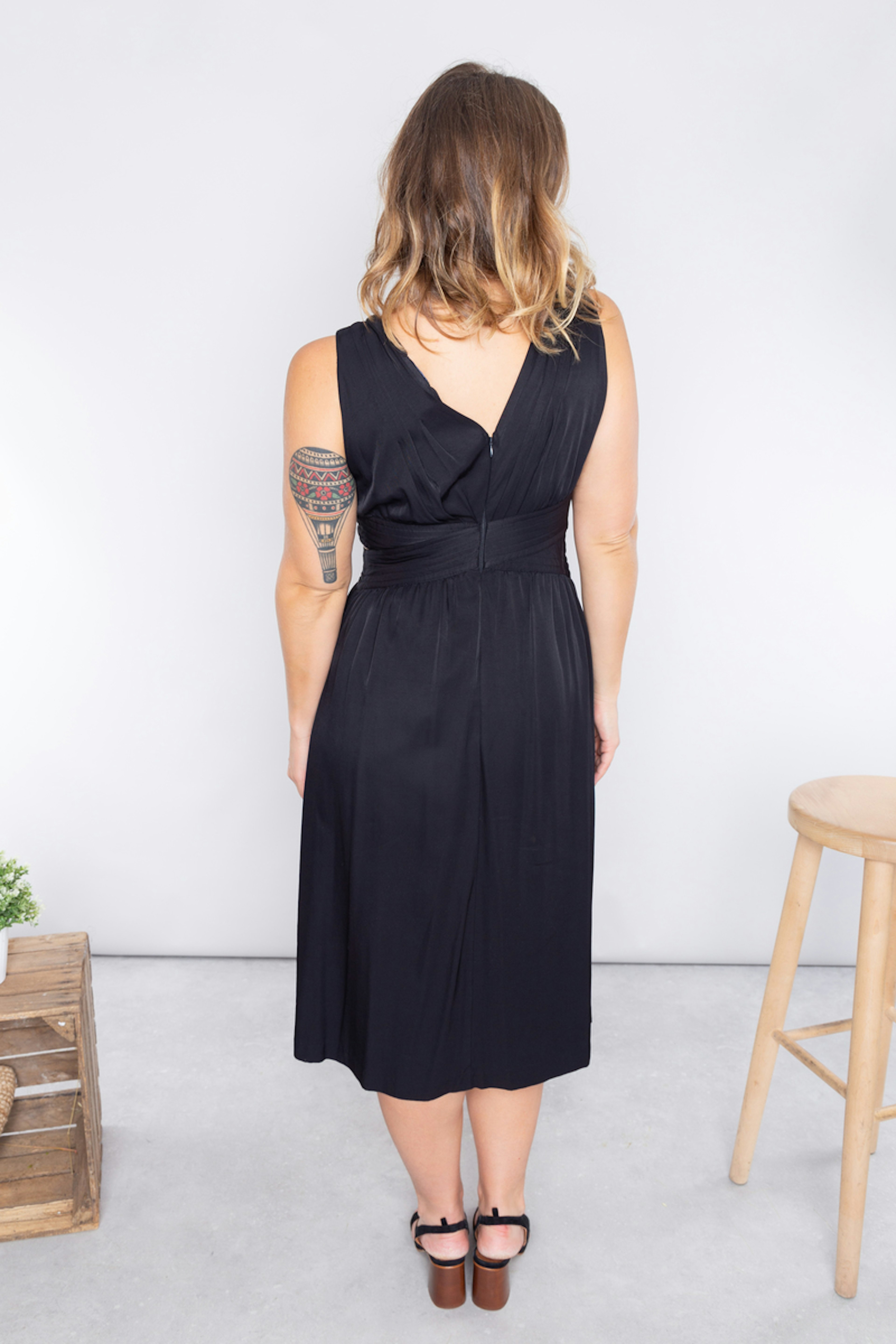 โข Robe midi noire รฉlรฉgante qui met en avant votre silhouette ! โข Sans manches ร bretelles รฉpaisses โข Encolure en V โข Haut effet croisรฉ et jupe fluide et large