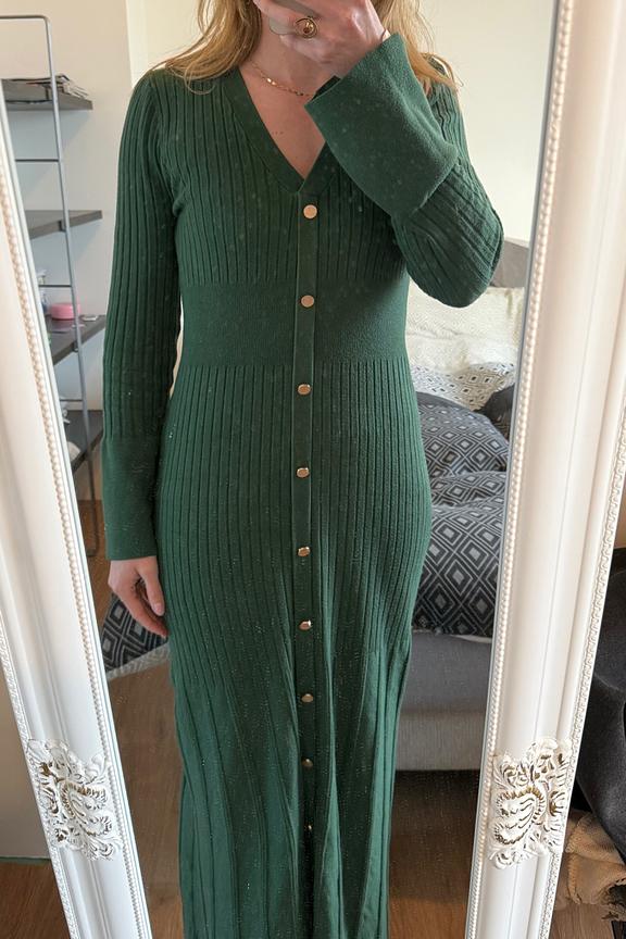 Associez cette robe longue à des bottines en cuir et une écharpe en laine pour une allure chic et cosy durant l'hiver. • Robe longue en maille près du corps • Décolleté en V • Manches longues • Boutonnage sur le devant • Maille côtelée