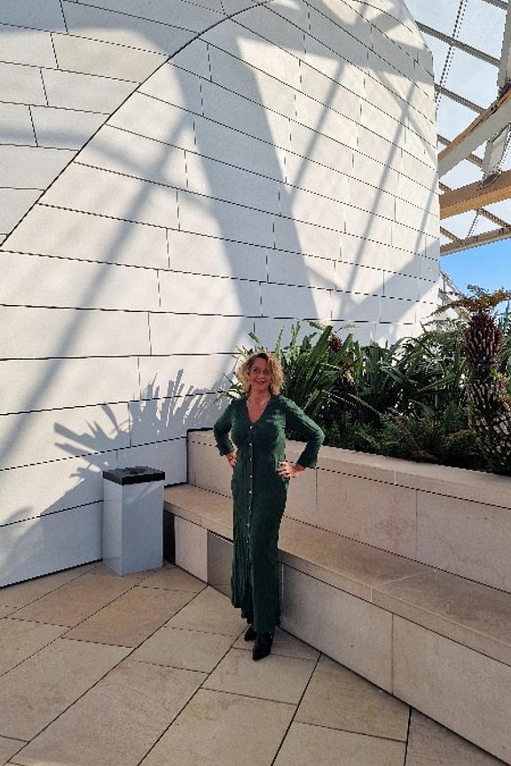 “Un peu longue, j'ai du mettre des chaussures compensées pour que la robe ne traîne pas par terre. J'ai mis une petite ceinture pour accessoiriser. Superbe robe, j'adore !”