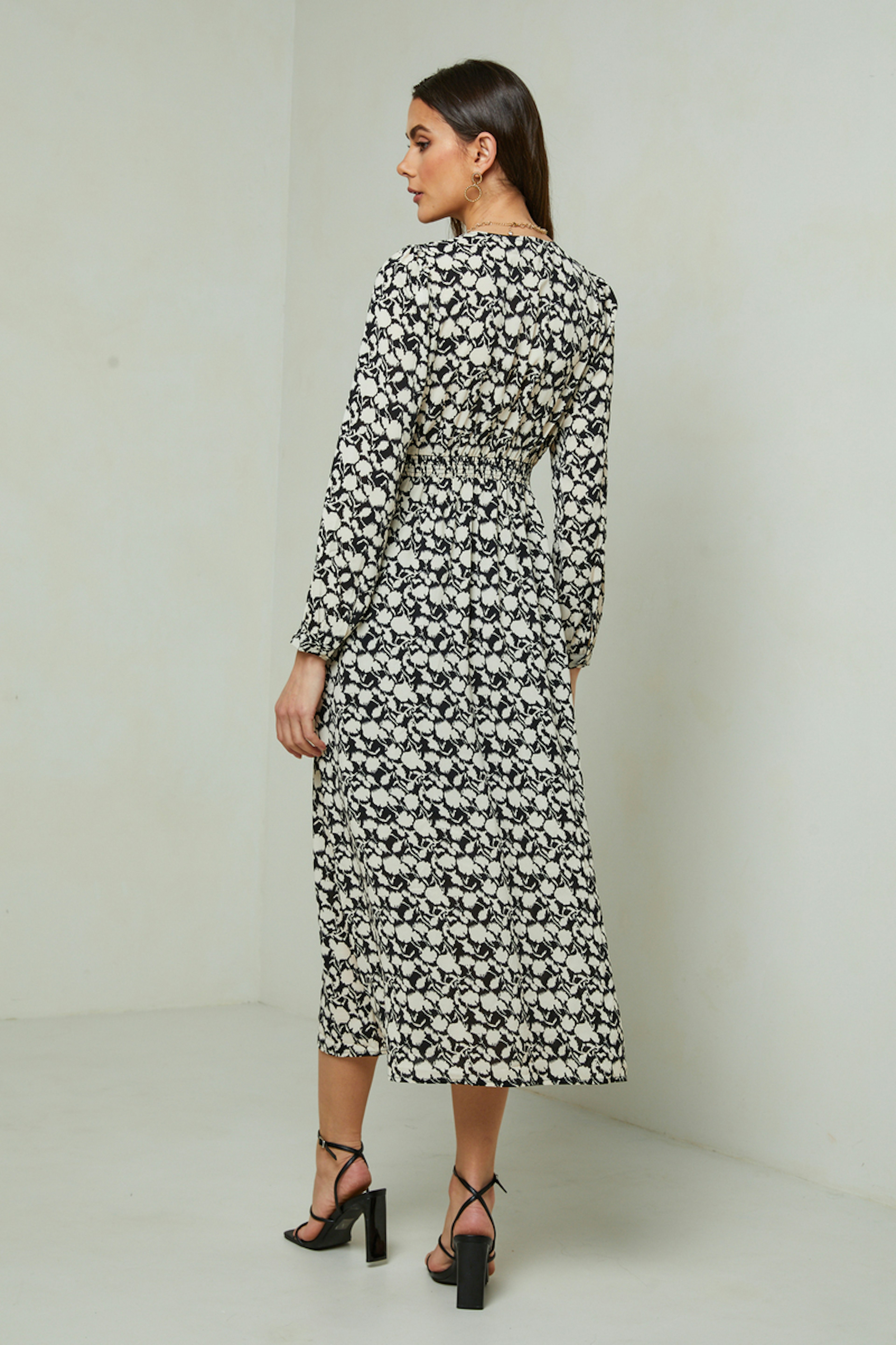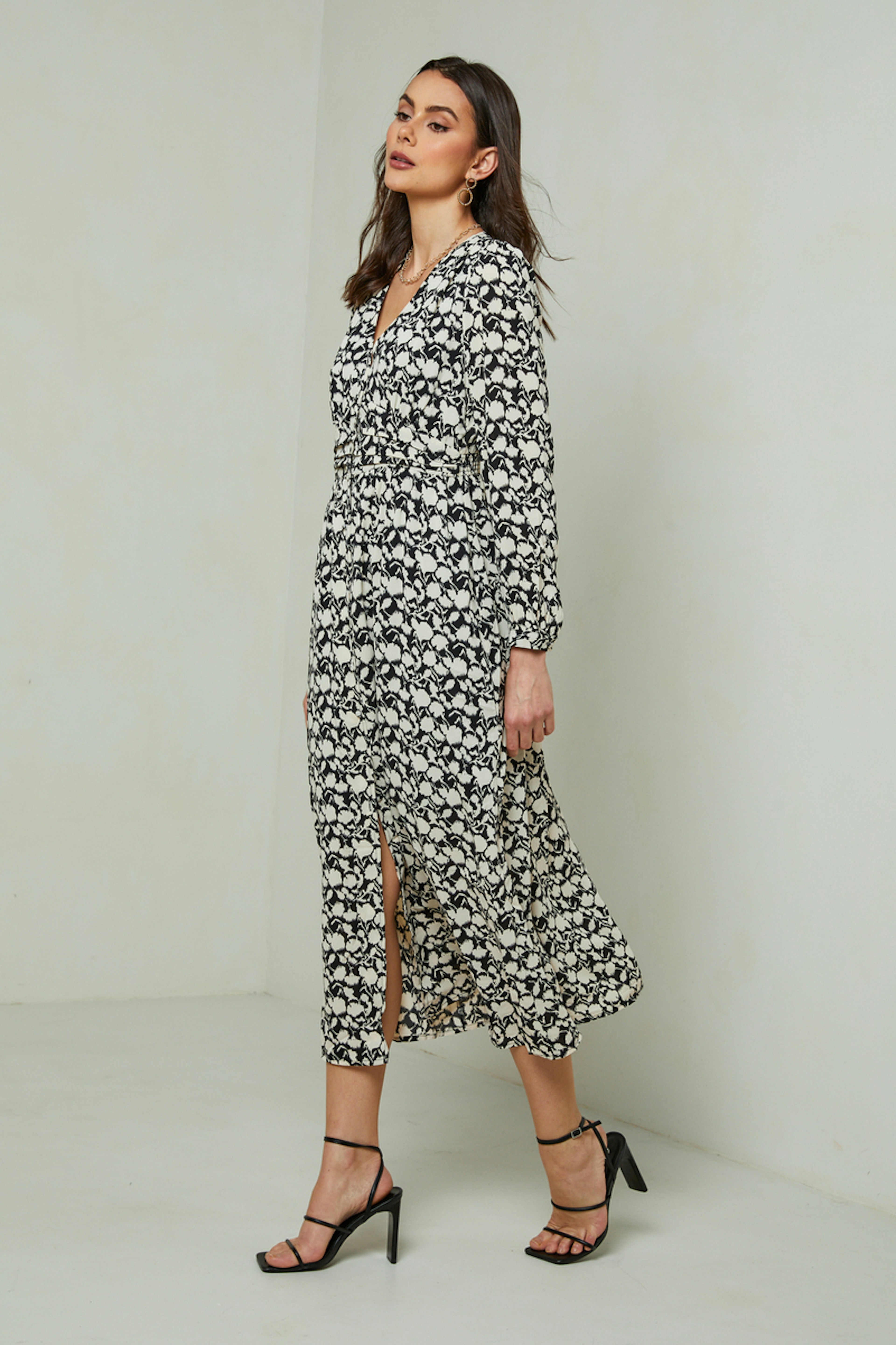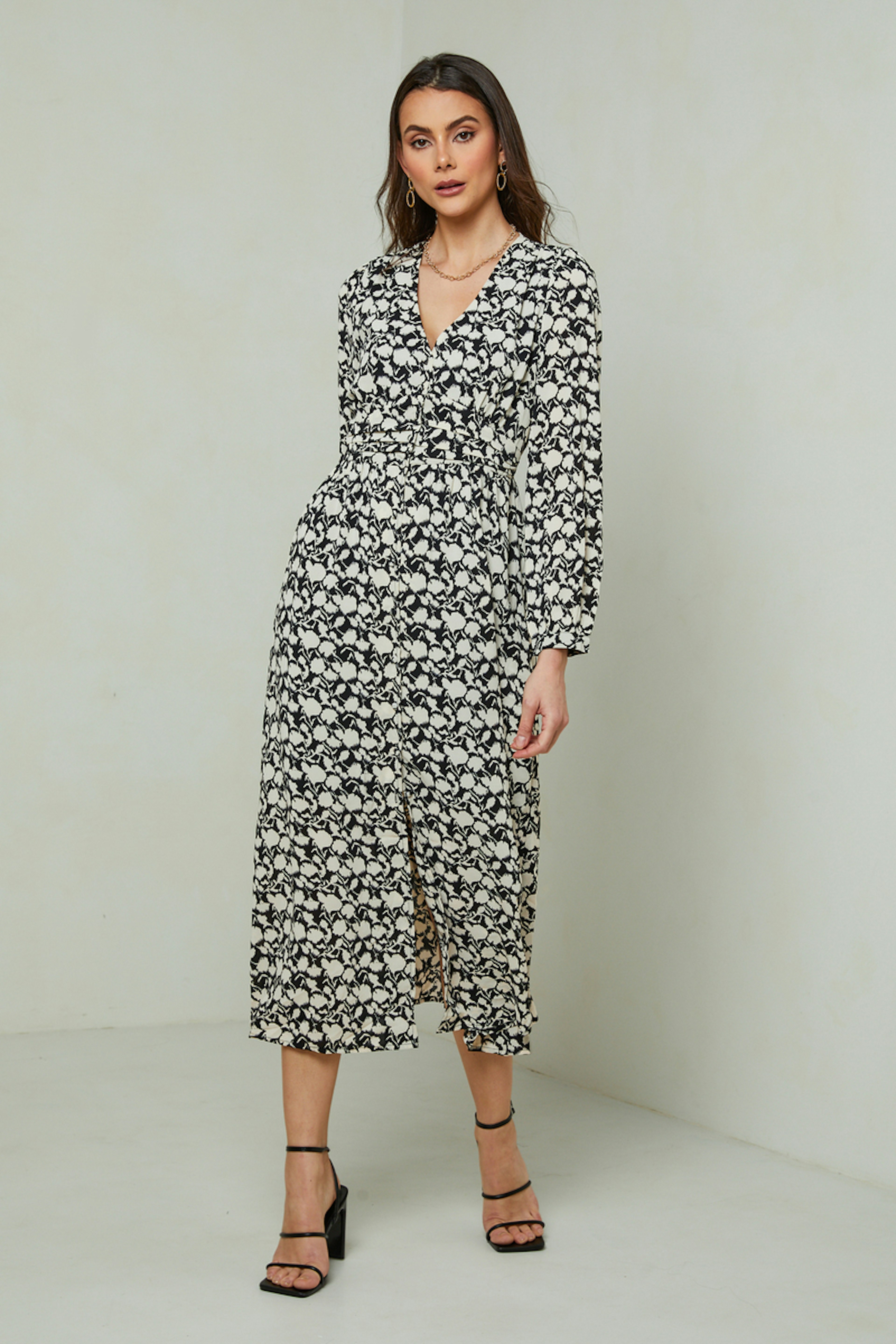 โ€“ Robe longue - Boutons sur toute la longueur de la robe โ€“ Dรฉcolletรฉ en V โ€“ ร‰lastique ร  lโ€™arriรจre de la taille โ€“ Plissage ร  la taille โ€“ Fente sur le devant โ€“ Manches longues โ€“ Boutons fermetures sur les poignets Le mannequin mesure 1m78 et porte une taille S