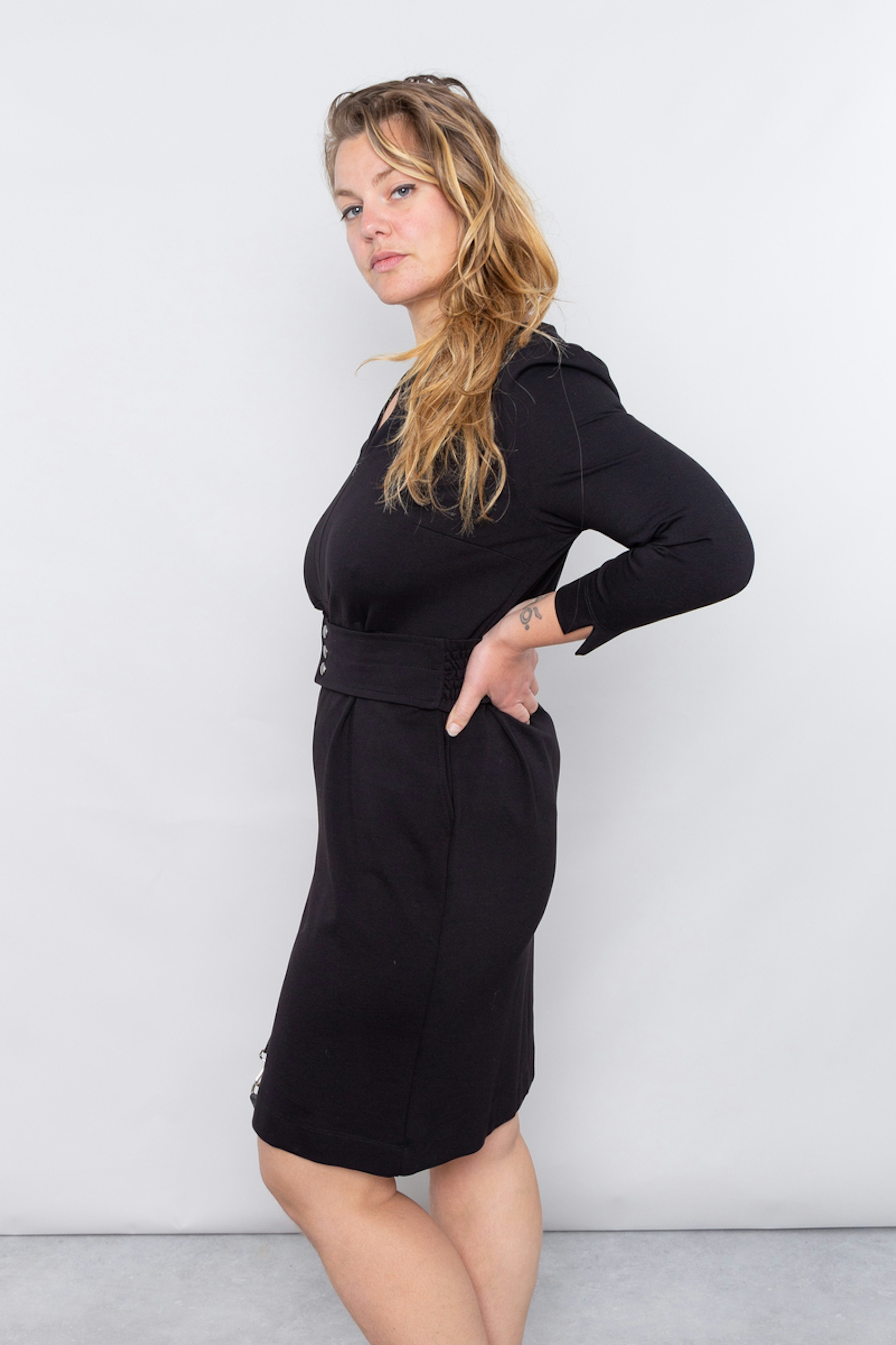 โข Robe courte ajustรฉe ร la taille โข Encolure V devant โข Fermรฉe par un zip devant โข Manches 3/4 froncรฉes aux รฉpaules โข Ceinture amovible avec 3 pressions coloris canon de fusil โข Longueur depuis l'รฉpaule : 100 cm (pour un 44/46)