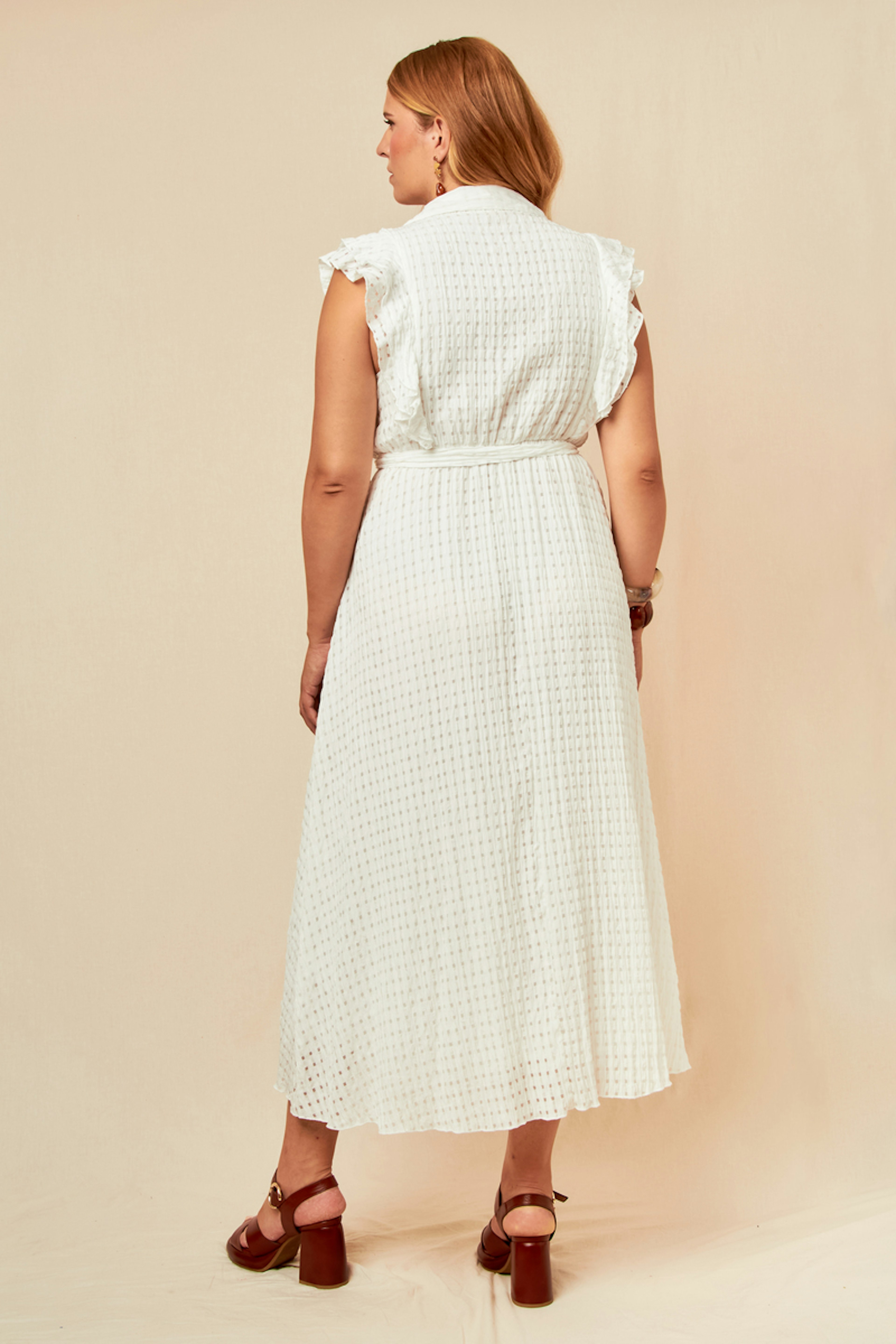 Associez cette robe estivale à des sandales camel et des boucles d'oreilles dorées pour une allure élégante lors de vos sorties d'été. • Robe imprimée • Col chemise • Manches volantées • Ceinture à nouer • Longueur mi-mollet