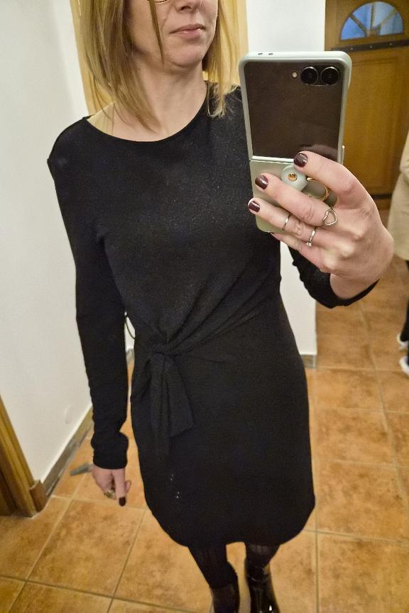 Associez cette robe avec des bottes hautes et un manteau long pour un look รฉlรฉgant cet hiver. โ€ข Robe courte โ€ข Ceinture ร  nouer โ€ข Manches longues โ€ข Encolure ronde โ€ข Effet scintillant