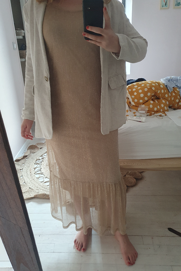 โBelle robe de soirรฉe! Brillante et confortable.โ