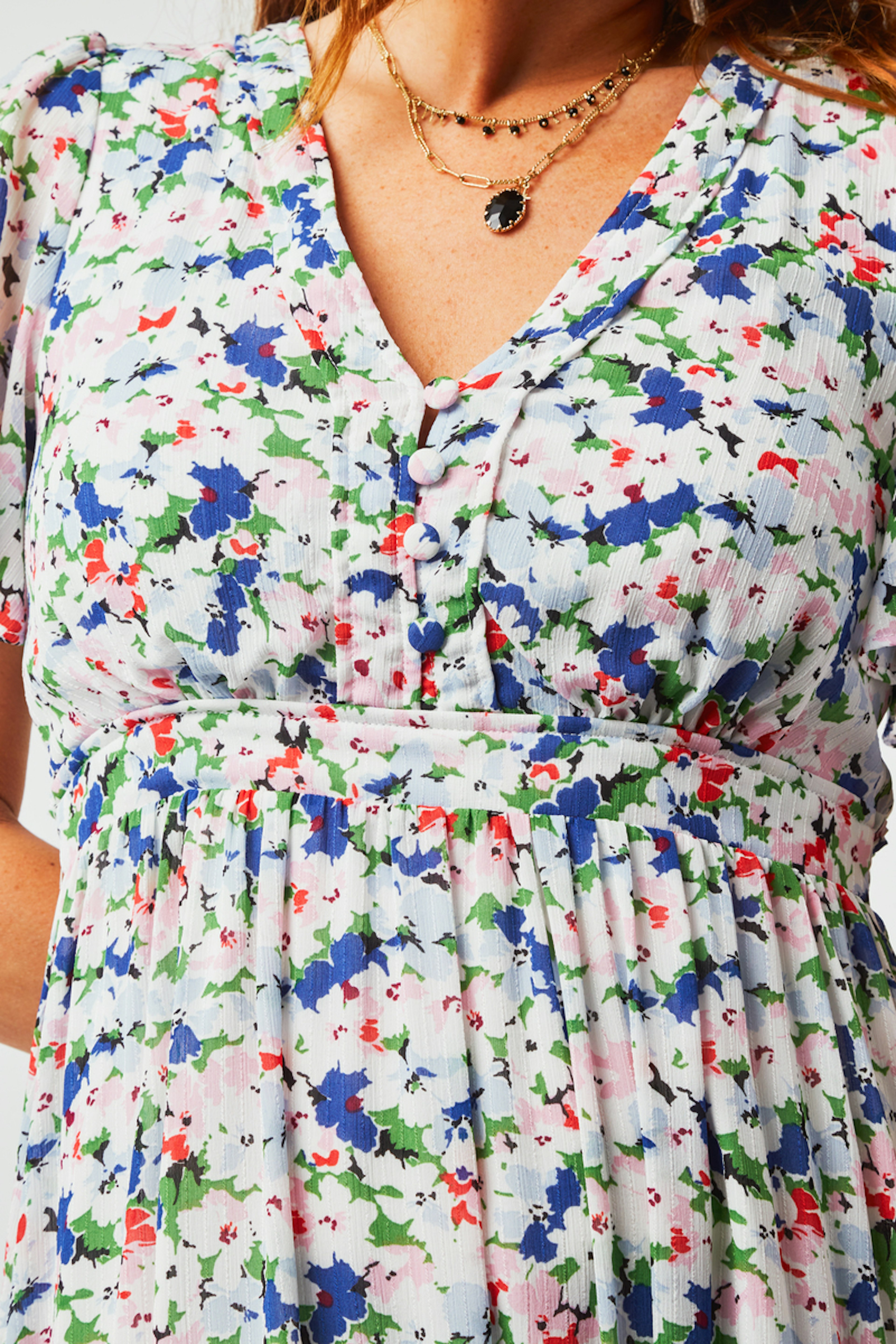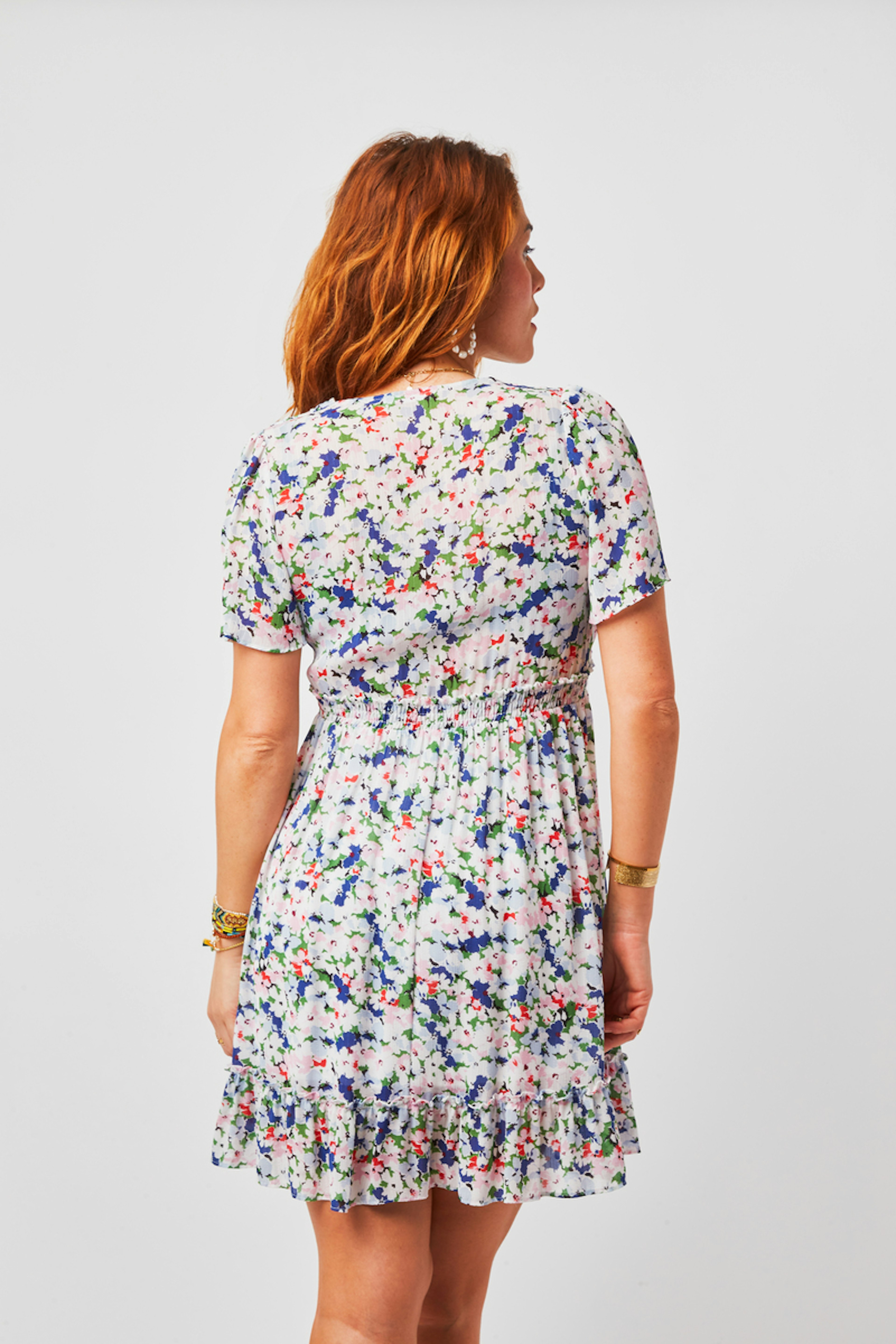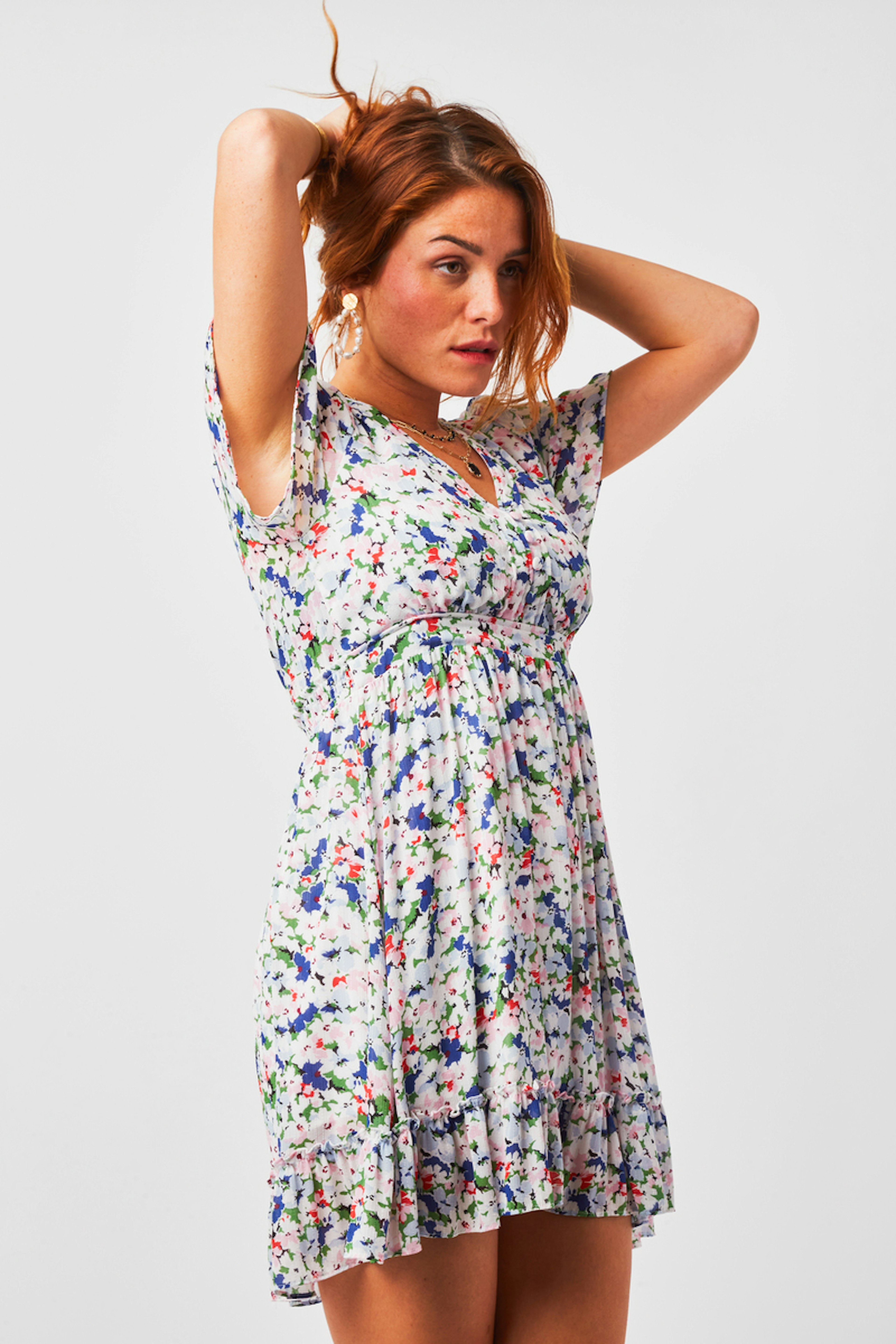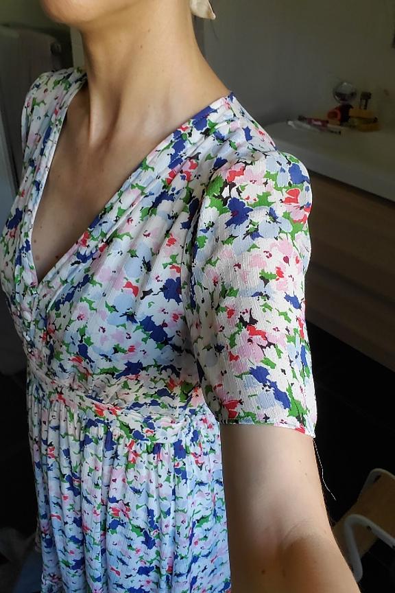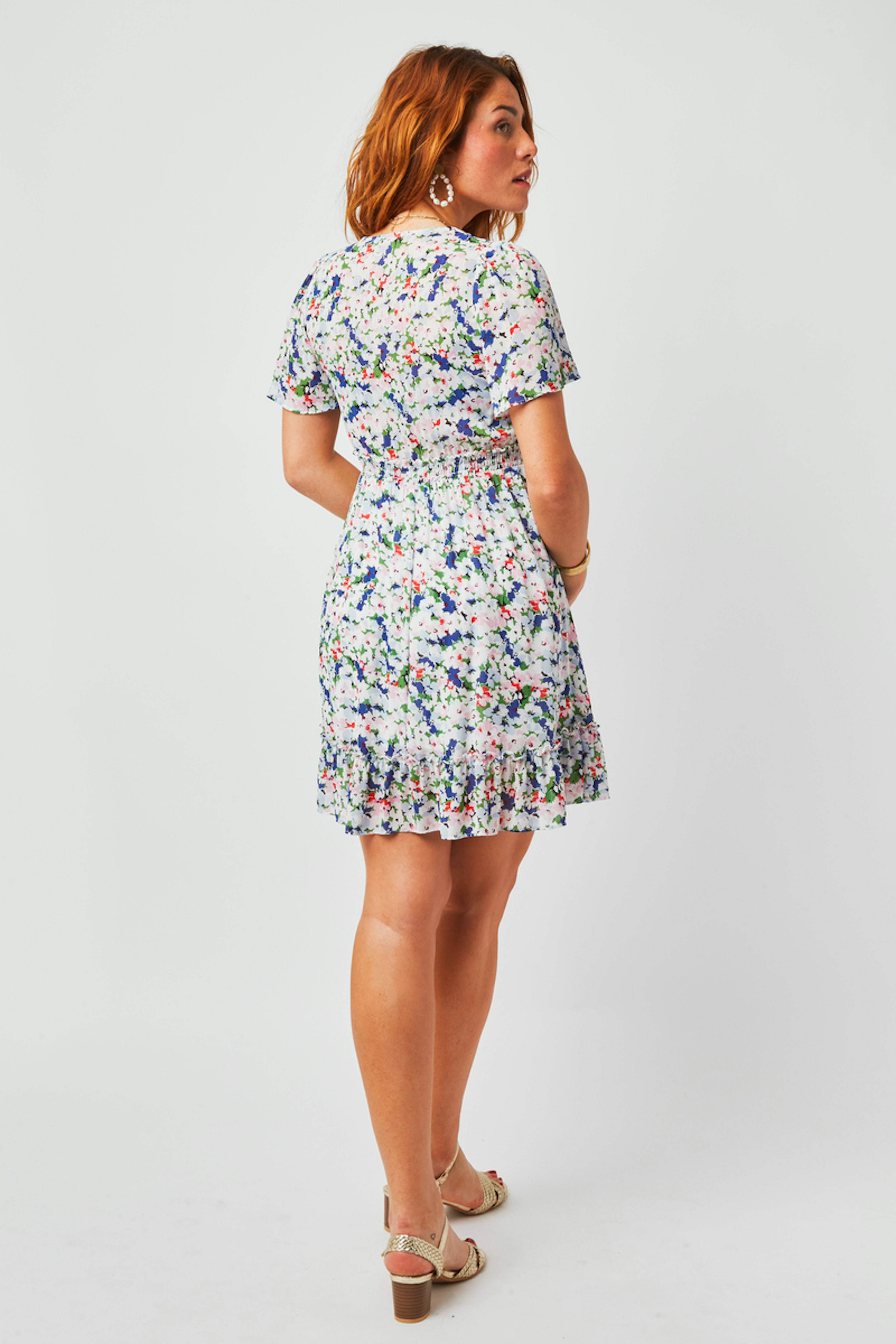 On a craquรฉ pour l'imprimรฉ impressionniste de la robe Vivianne. โข Robe manches courtes โข Dรฉcoupe ร la taille โข Ouverture boutonnรฉe โข Boutons recouverts โข Volant lรฉgรจrement froncรฉ en bas de jupe