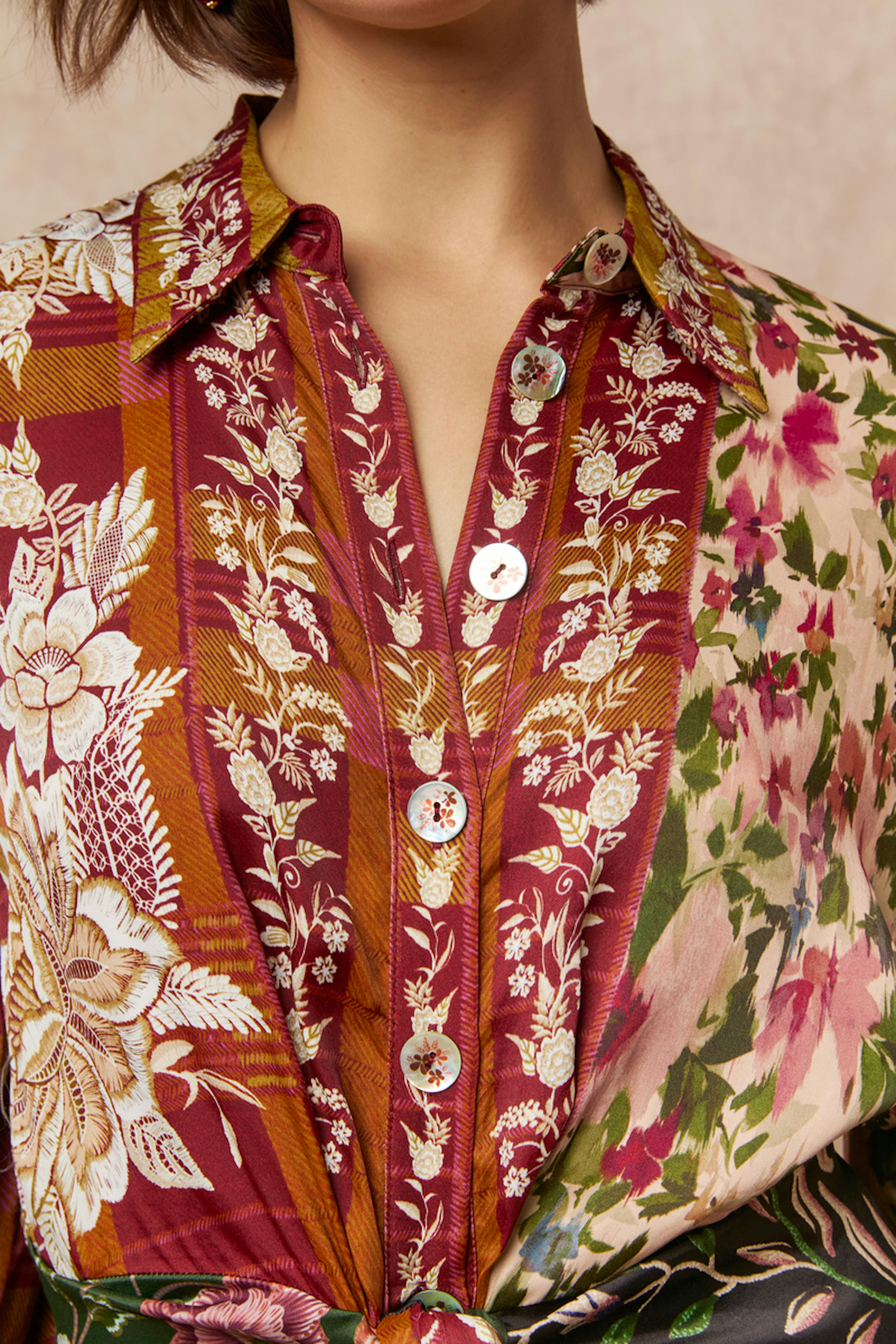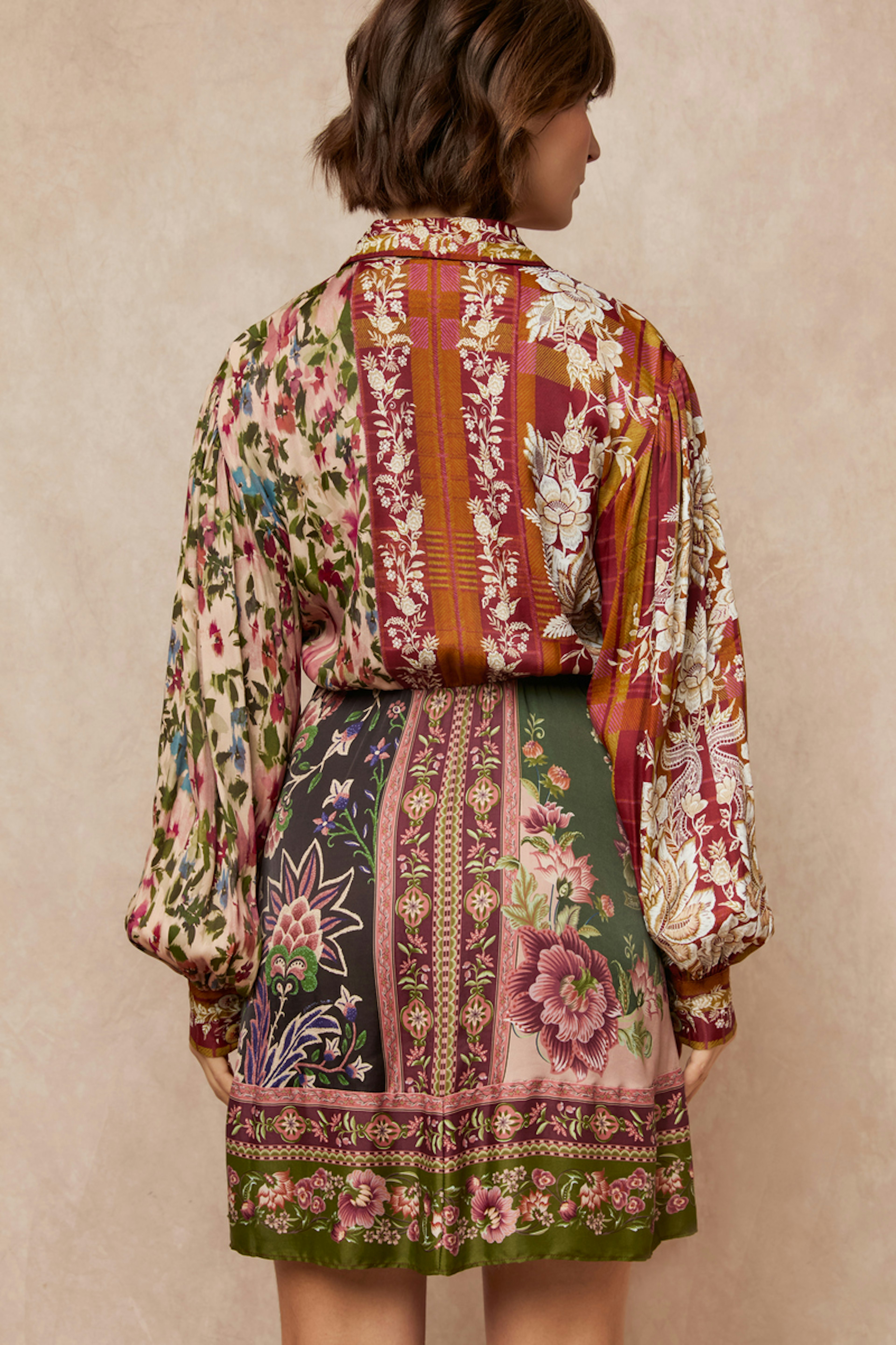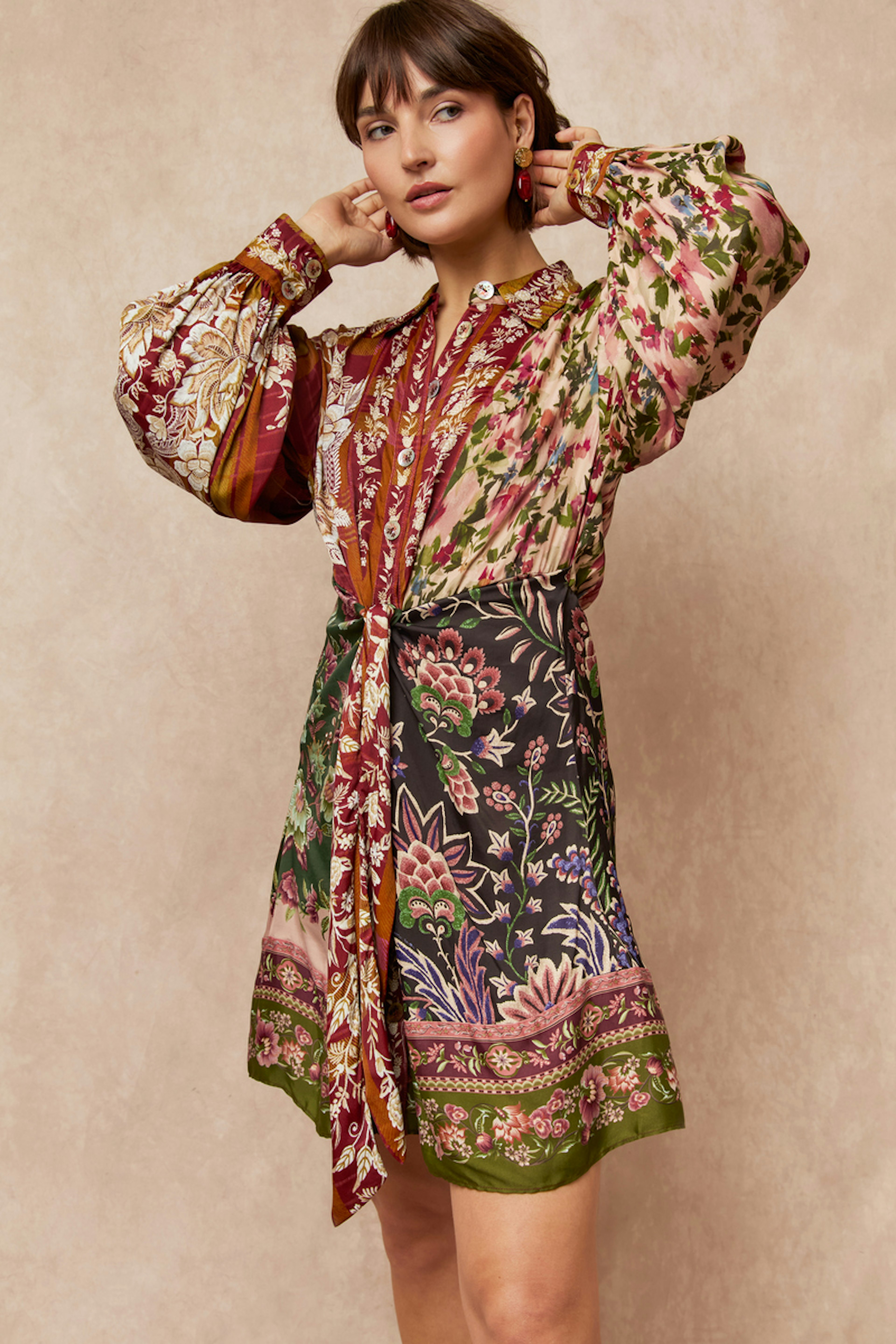 Optez pour une paire de bottines en cuir et un trench pour un look hivernal chic et élégant. • Robe courte • Col chemise • Manches longues bouffantes • Ceinture nouée à la taille • Motif imprimé fleuri