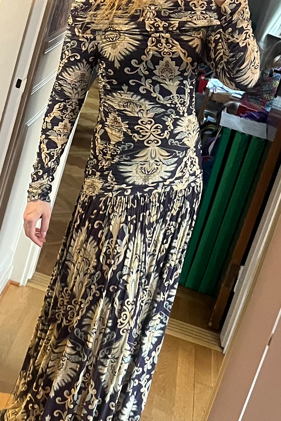 Associez cette robe à des bottines en cuir et un châle douillet pour une allure chic et confortable durant l'hiver. • Robe longue • Coupe épaules dénudées • Manches longues ajustées • Taille froncée • Motif imprimé élégant