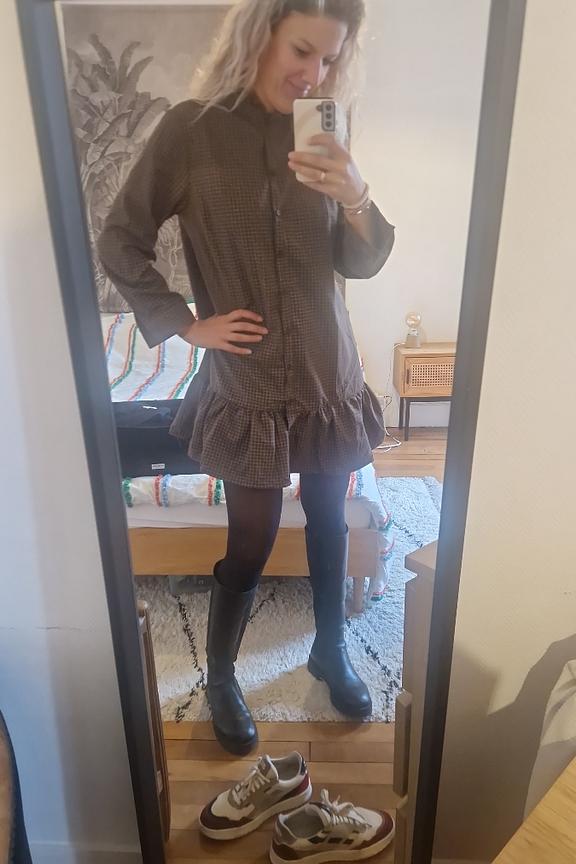 “Vraiment sympa et agréable à porter. Tissu pas très épais pour la saison: à porter avec des sous-couches 😉”