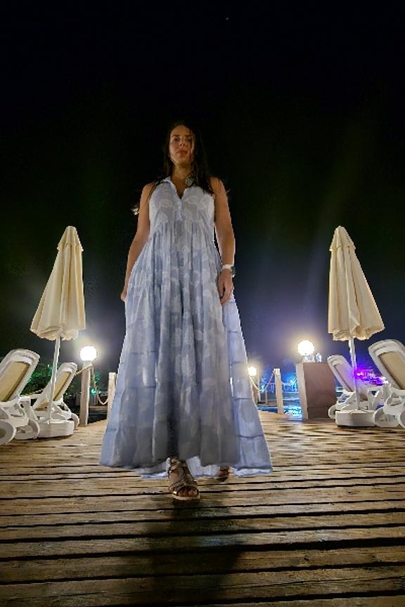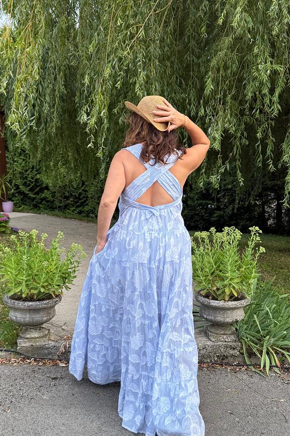“Sublime!! Je mesure 1m80, elle restait tout de même bien longue, beaucoup de volume dans la jupe qui lui donne un côté très romantique. Le dos nu et la taille sont sublimés et soulignés par la ceinture dos. Look coup de coeur !”