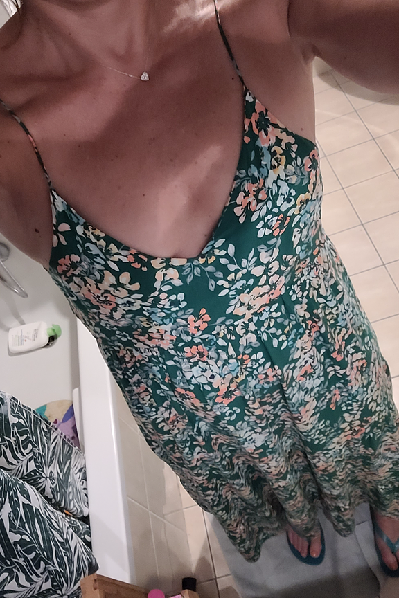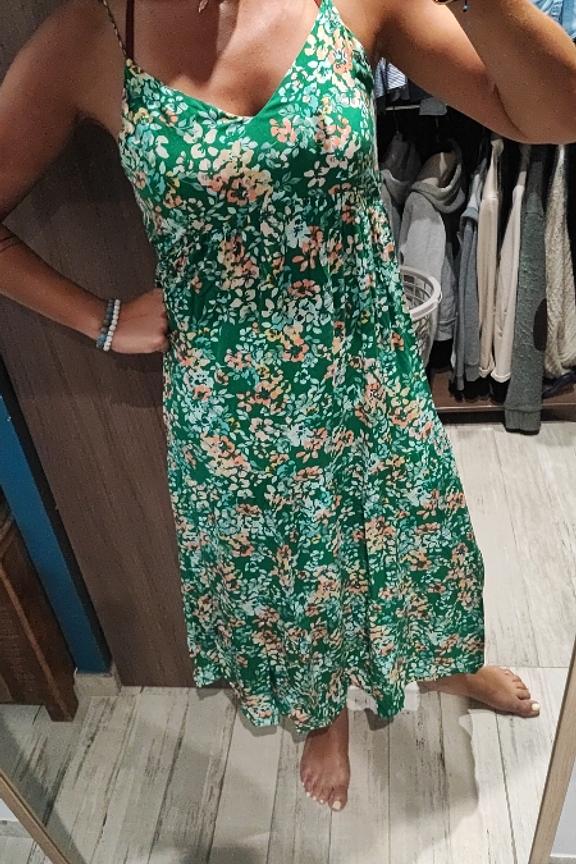 โBelle robe estivale. Bretelles un in peu longues non rรฉglablesโ