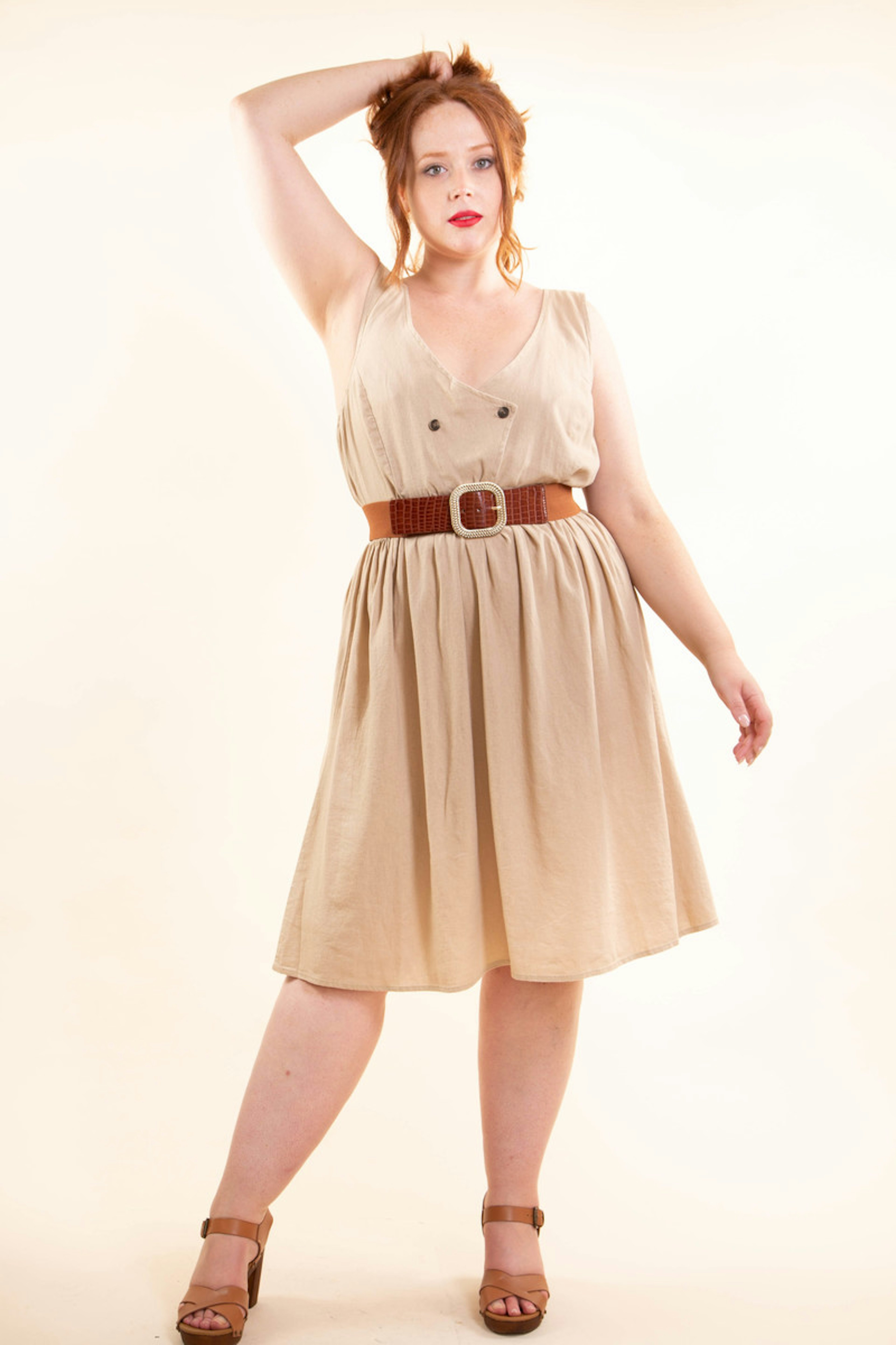 Craquez pour cette robe beige en lin et viscose. Sa coupe ultra chic est ceintrรฉe au niveau de la taille.