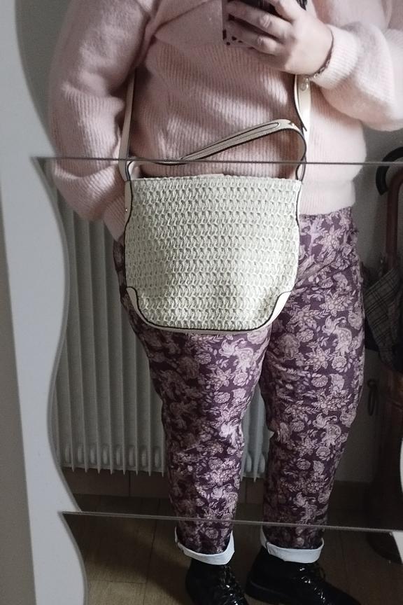 โPas du tout blanc comme sur la photo de prรฉsentation, mais couleur beige avec raphia. Plein de jolies poches zippรฉes, pratique avec sa sangle, on a les mains libresโ