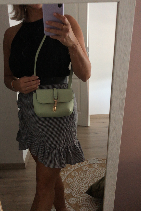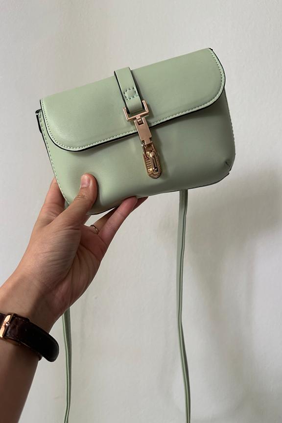 โข Petit sac ร main coloris vert pistache โข Fermoir dorรฉ โข Sangle fine ajustable โข Dimensions : 19ร12.5ร5.5