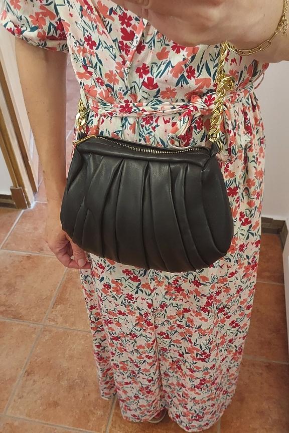 โข Sac besace souple โข Revรชtement faรงon cuir grainรฉ plissรฉ โข Bandouliรจre fixe chaรฎne gourmette en mรฉtal dorรฉ โข Zip discret sur le dessus โข 1 poche intรฉrieure plaquรฉe โข Dimensions : H18xL20xL7 cm
