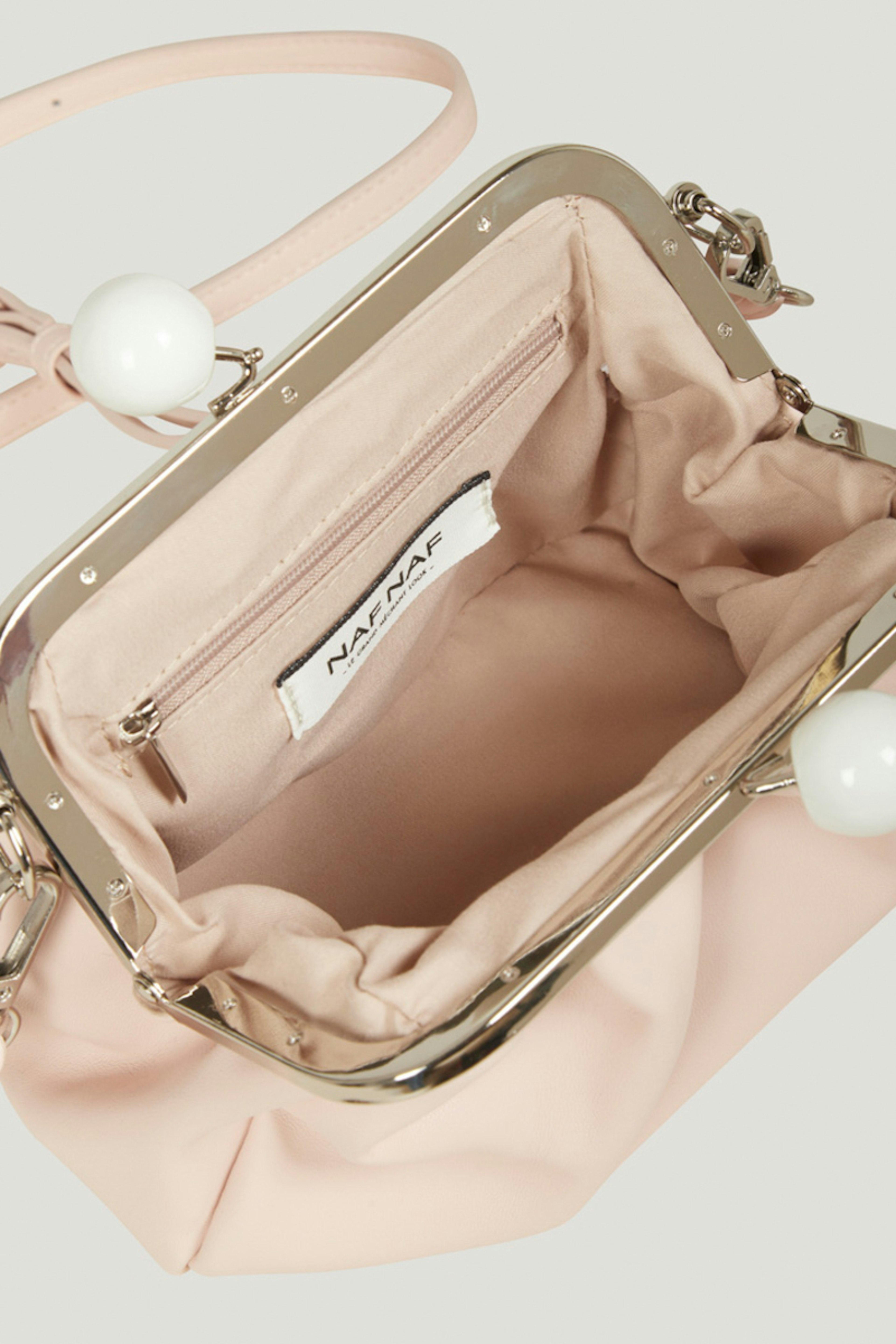 โข Sac bourse โข Fermoir perle โข Poche intรฉrieure zippรฉe โข Dimensions : H17 L20 P8 cm