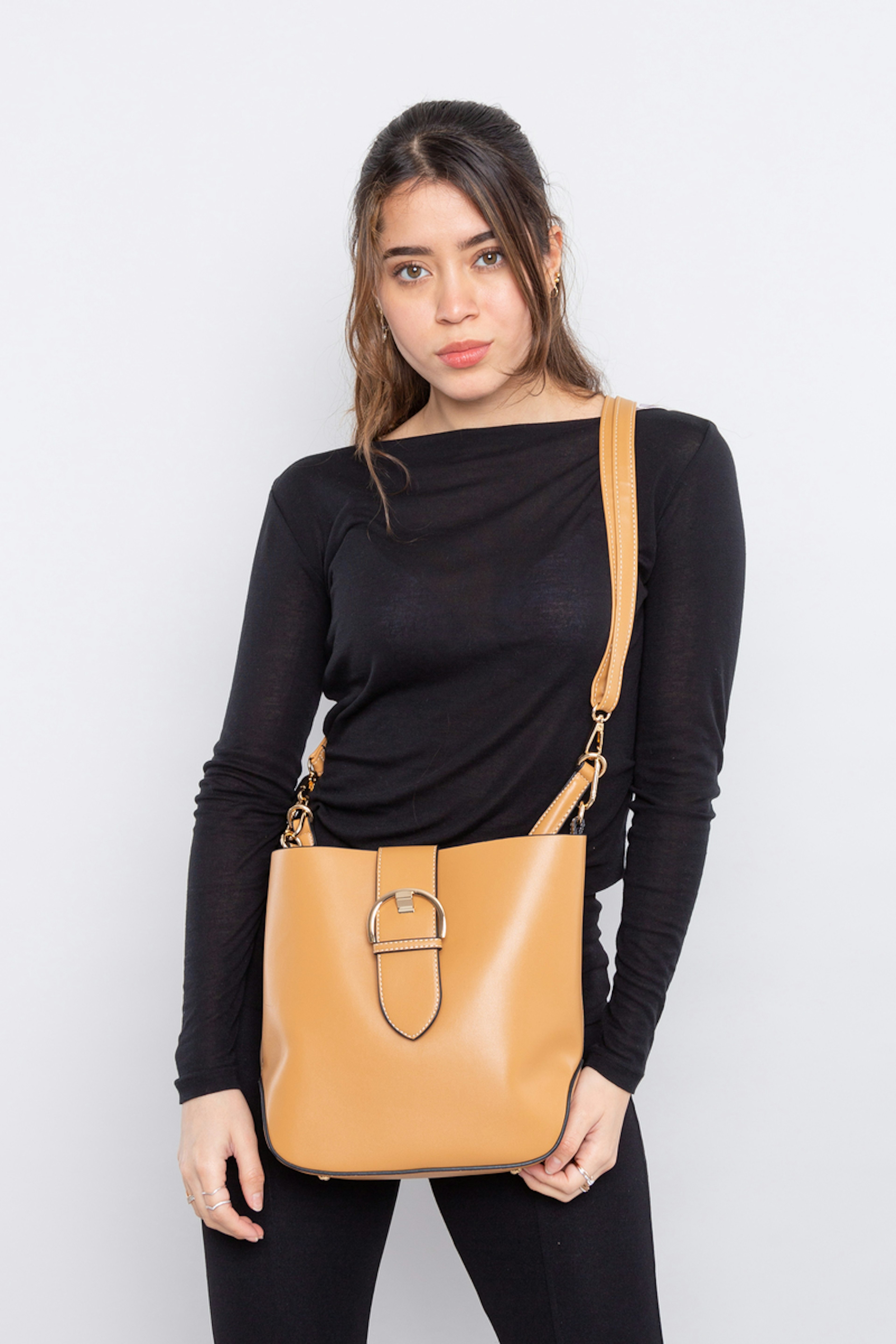 โข Sac en polyethurane โข Bandouliรจre amovible โข Fermeture avec boucle โข Doublรฉ en nylon โข Dimensions 26 x 26 x 12cm