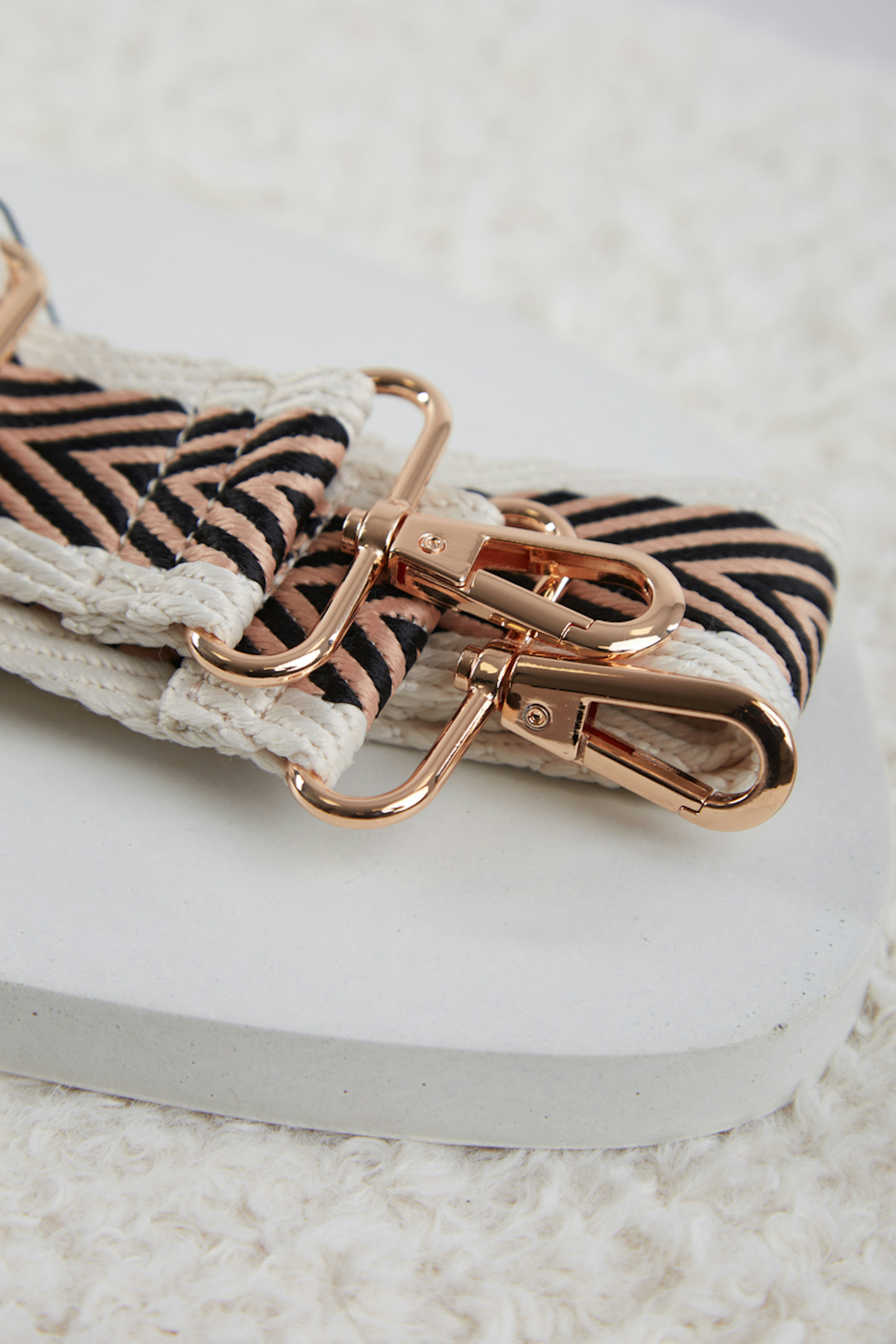 โข Sangle de sac ร main dรฉtachable โข Motifs flรจches types univers indien crรจme et noir โข Mousquetons d'attache dorรฉs โข Longueur rรฉglable pour ajuster votre sac ร vos envies !