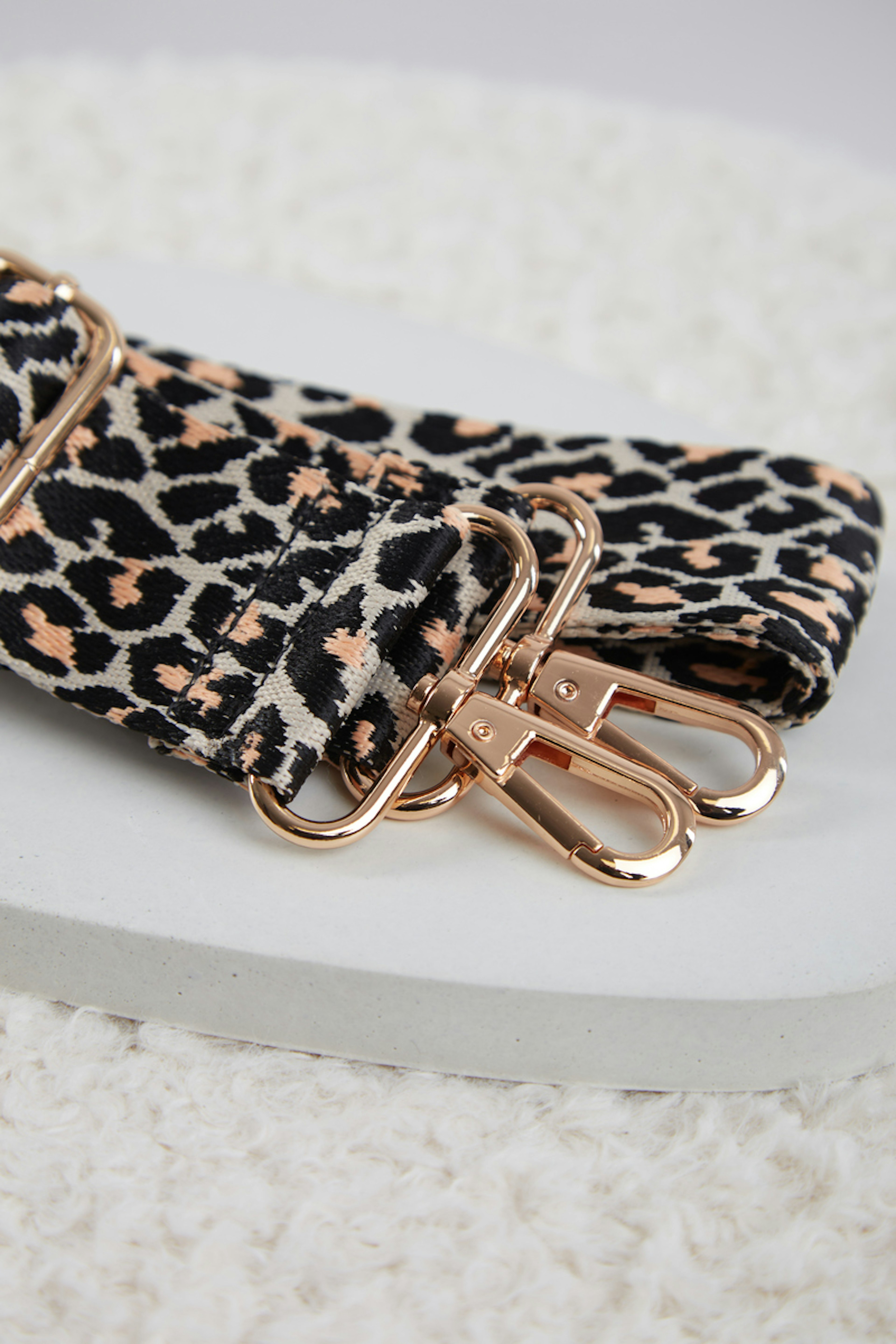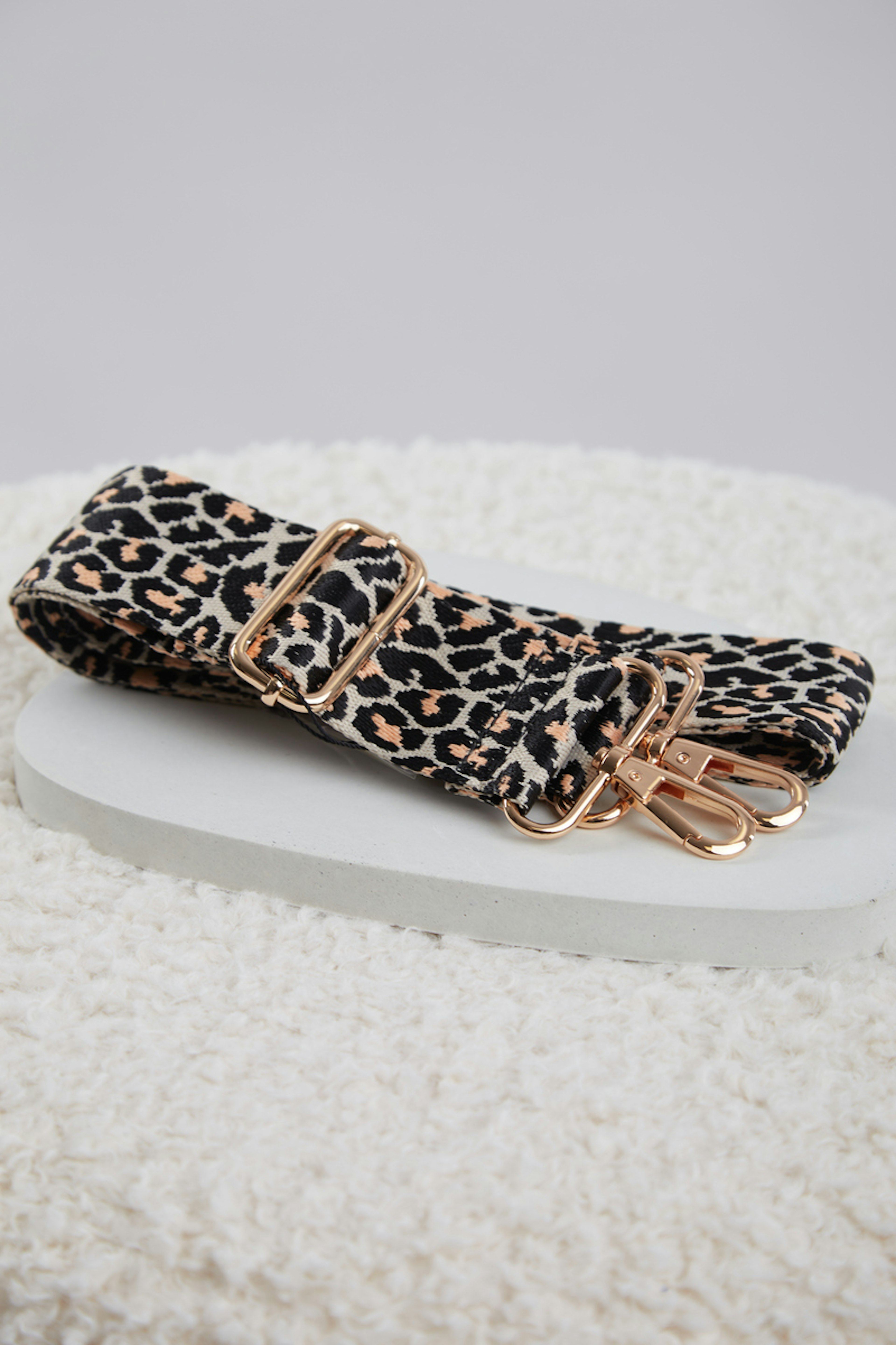 โข Sangle de sac ร main dรฉtachable โข Motifs tรขches de lรฉopards noires et marrons โข Mousquetons d'attache dorรฉs โข Longueur rรฉglable pour ajuster votre sac ร vos envies !
