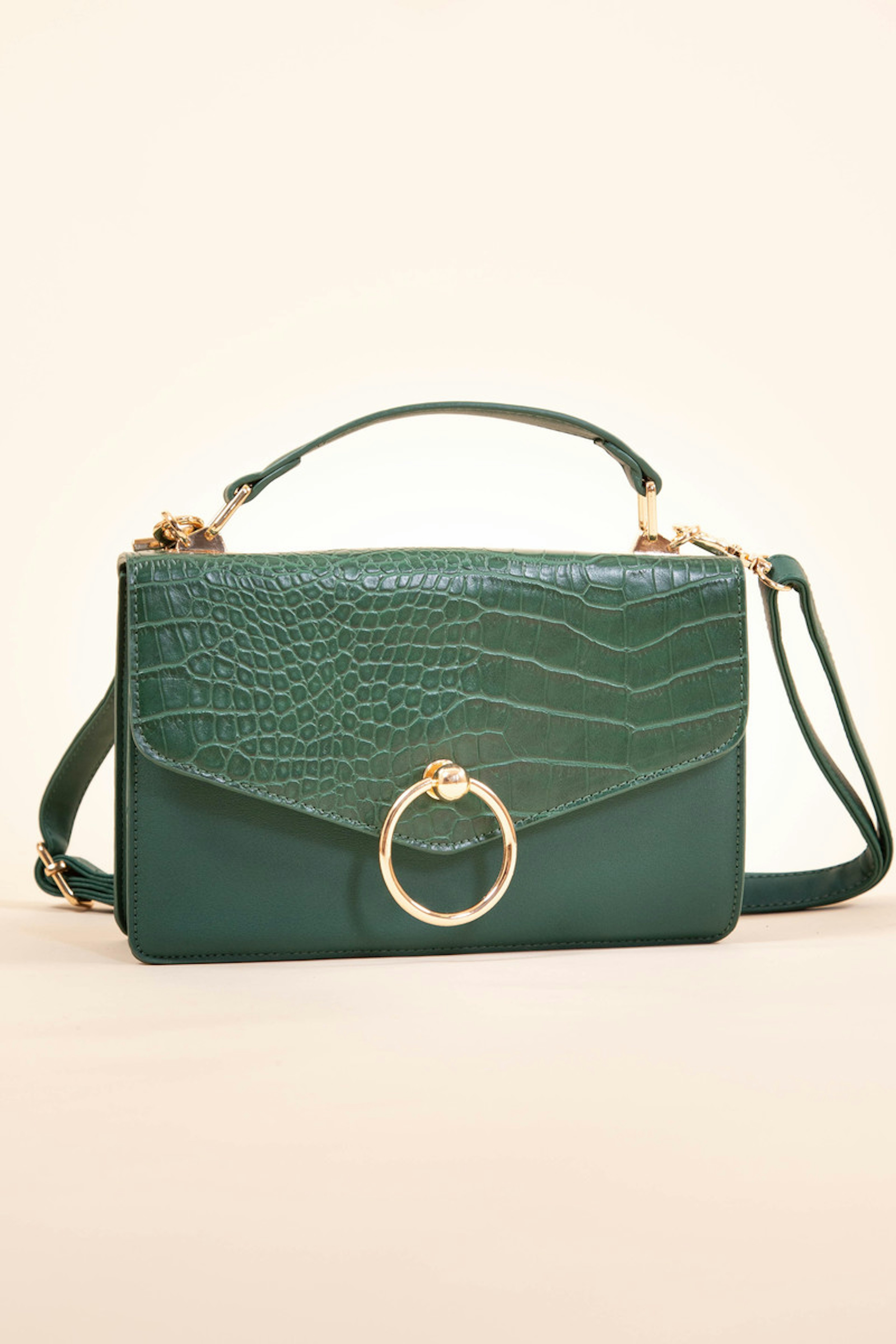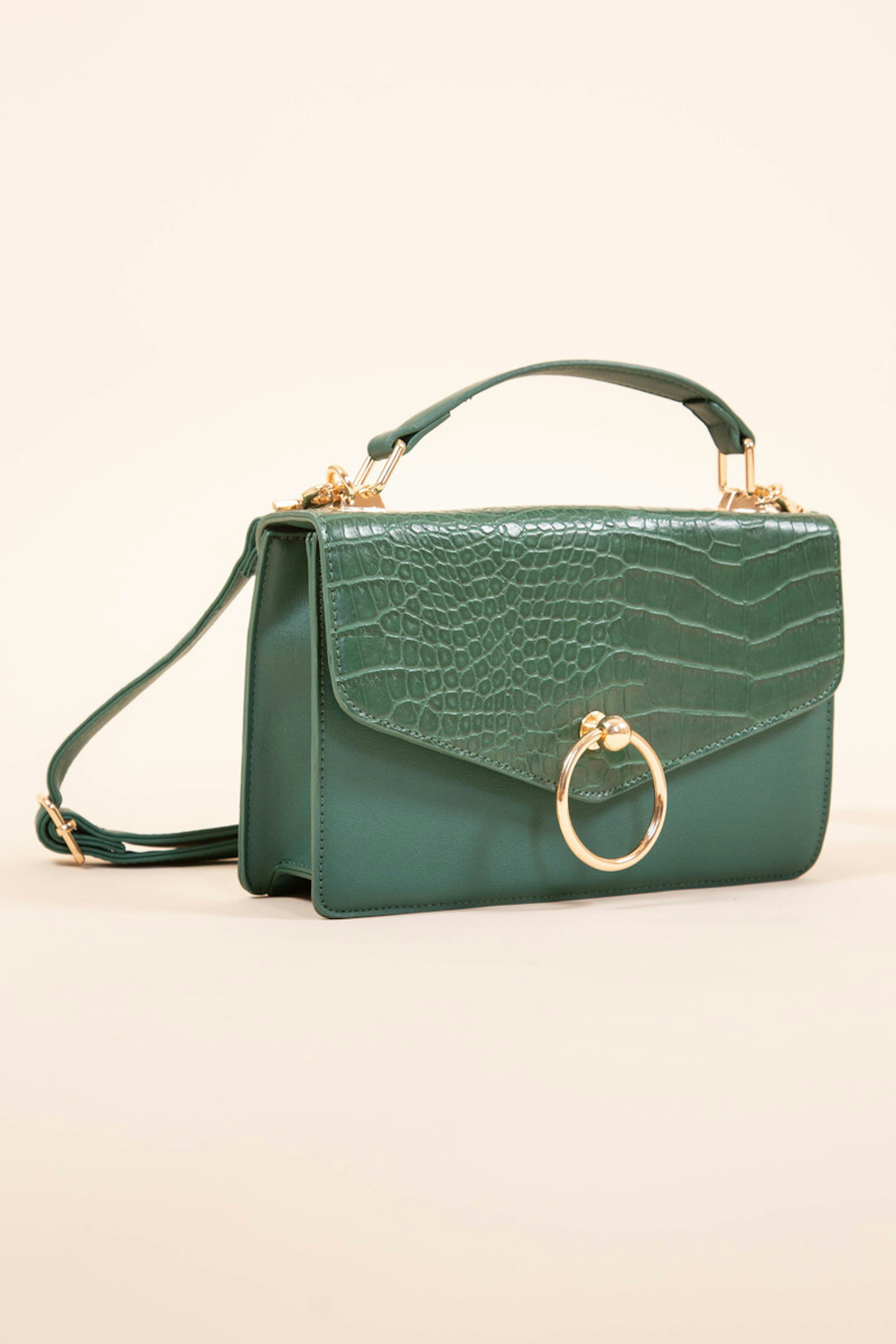 Ce sac ร main est chic mais original grรขce ร son vert profond et sa boucle dorรฉe. On a craquรฉ pour ses mรฉlanges de similicuirs lisses et craquelรฉs et la praticitรฉ de sa laniรจre ajustable. Le sac est refermable grรขce ร une fermeture รฉclair ainsi qu'un bouton pression extรฉrieur. Il possรจde รฉgalement une pochette intรฉrieure refermable.