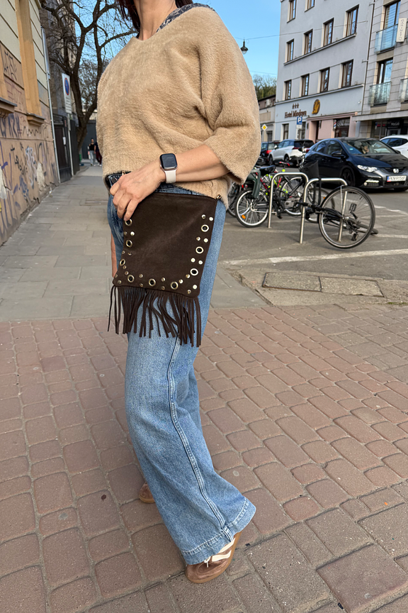 Associez ce sac en cuir à une robe bohème pour une allure chic. Parfait avec des bottines automnales ou des sandales estivales. • Sac bandoulière en cuir • Finitions à franges • Détails œillets dorés • Confection soignée • Design élégant et polyvalent