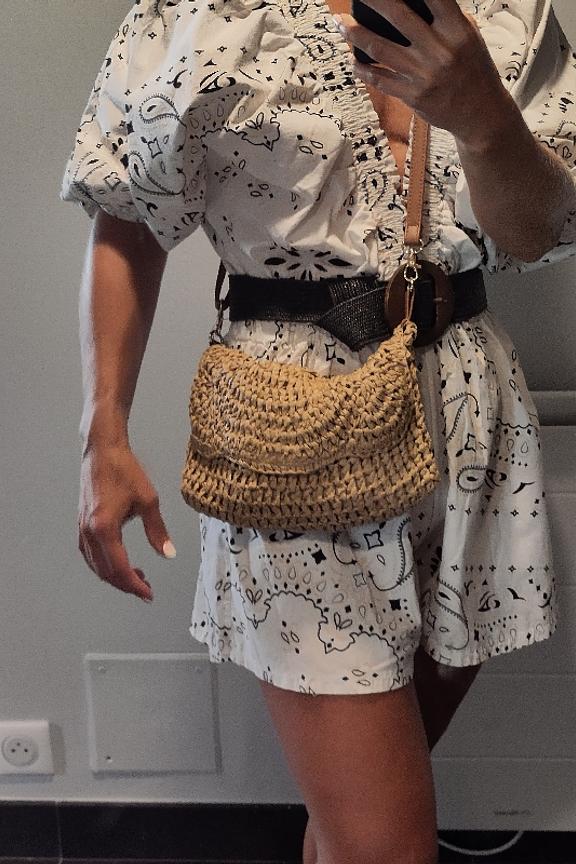 Associez ce sac en paille beige à une robe d'été fluide pour un look estival ou à un jean pour un style plus décontracté. Un compagnon parfait en toute saison! • Sac en paille • Forme rectangulaire • Fermeture à rabat • Sangle ajustable • Texture tressée