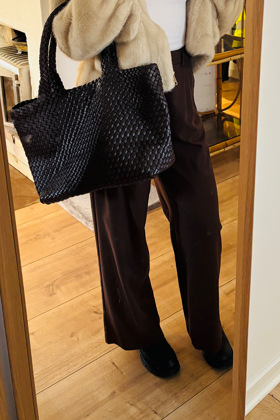 Ajoutez une touche d'élégance à votre tenue en associant ce sac tressé avec une veste en cuir et un jean casual. Parfait en toute saison pour sublimer votre style. • Sac à main tressé • Poignées robustes • Confectionne avec soin • Couleur riche et profonde • Texture unique et chic