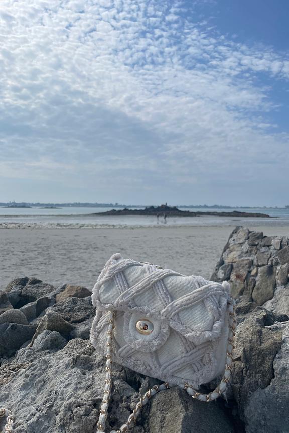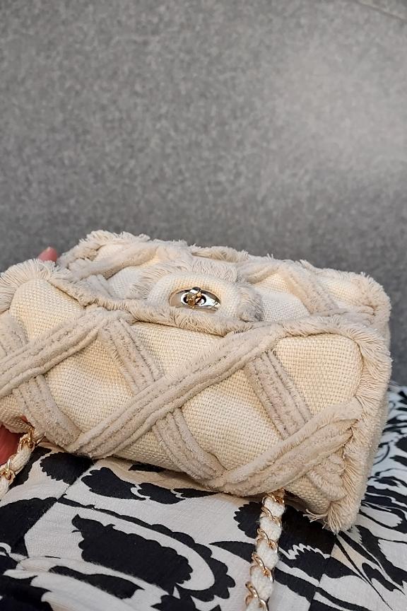 Ajoutez une touche d'รฉlรฉgance bohรจme ร votre tenue avec ce sac ร main beige en coton. Associez-le ร une robe fluide ou un ensemble chic pour un look raffinรฉ et tendance, idรฉal pour toutes les saisons. โข Sac ร main en coton โข Bandouliรจre chaรฎne dorรฉe โข Fermeture ร bouton tournant โข Design texturรฉ avec franges โข Motif รฉcru uni