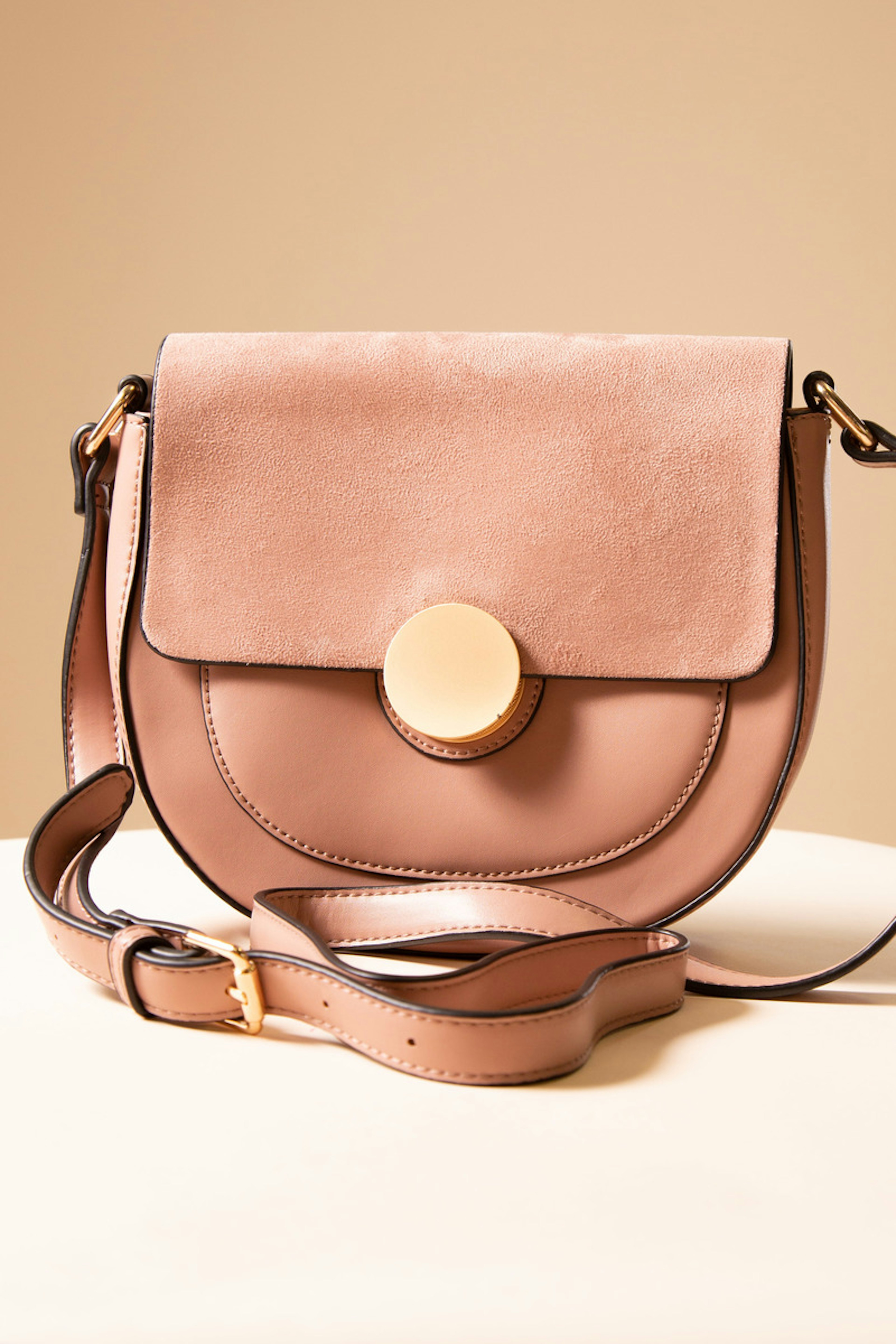 Sina est un joli sac arrondi bi-matiรจre rose poudrรฉ.