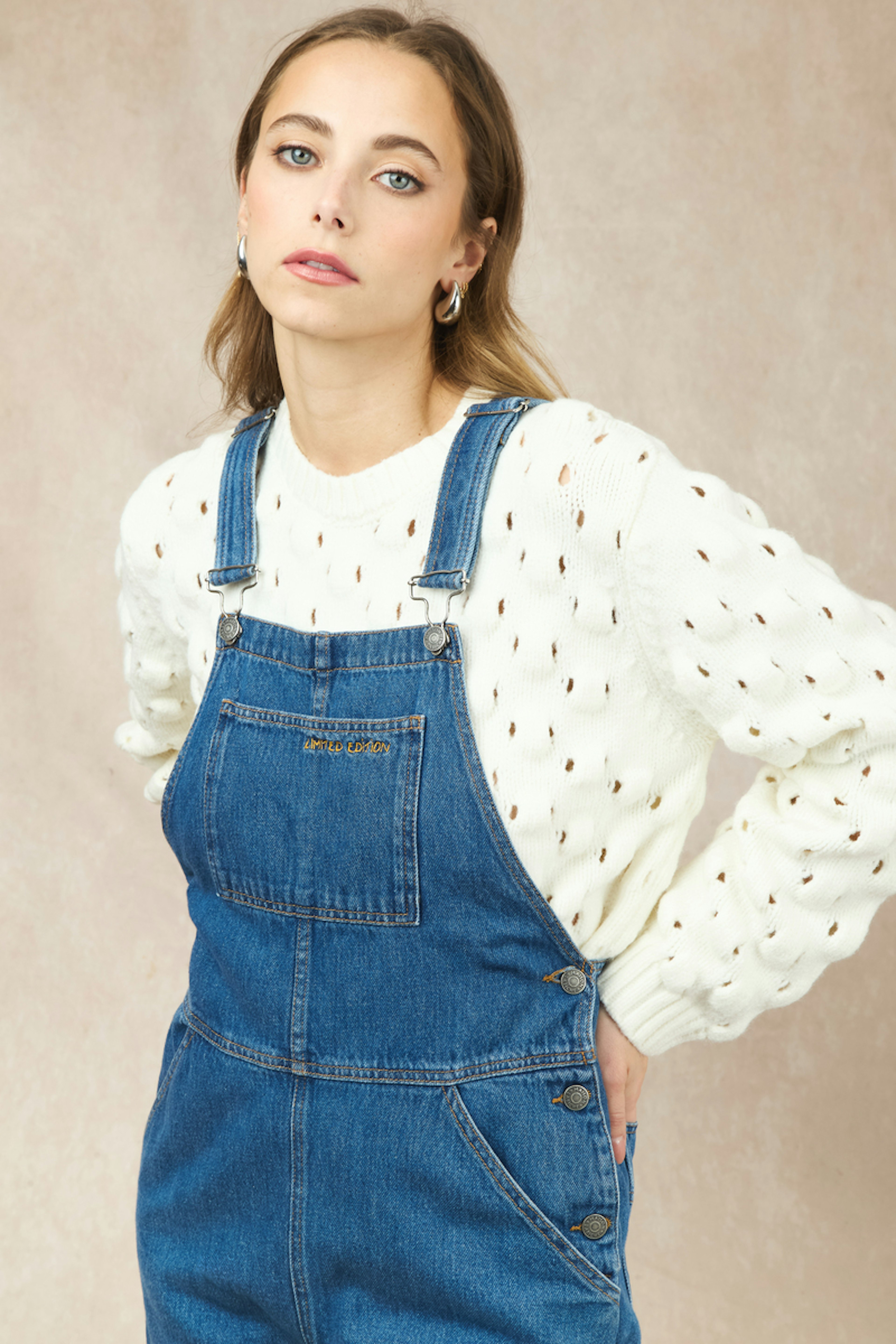 Associez cette salopette en denim avec un pull douillet et des baskets pour un look casual-chic. Parfaite en toutes saisons, elle s'adapte ร toutes vos envies. โข Salopette en denim bleu medium โข Coupe ajustรฉe โข Encolure colletage en bord-cรดte โข Buste ajustable avec agrafes โข Broderie signature "Limited edition" de Maison Labiche sur la poitrine โข Coton biologique certifiรฉ GOTS โข Fabriquรฉe au Portugal