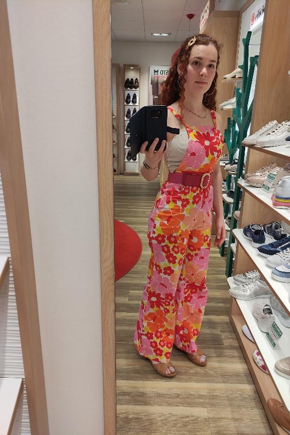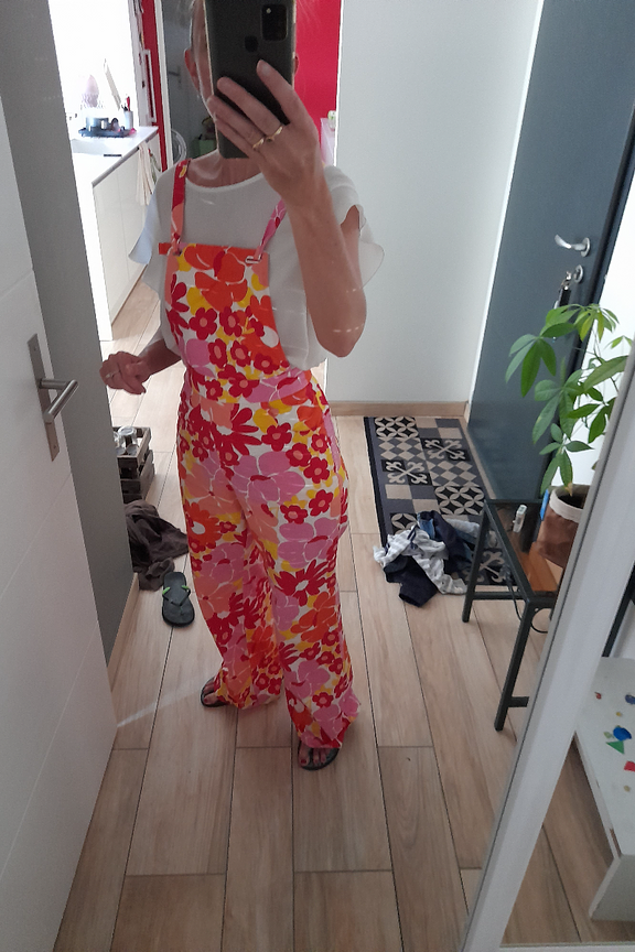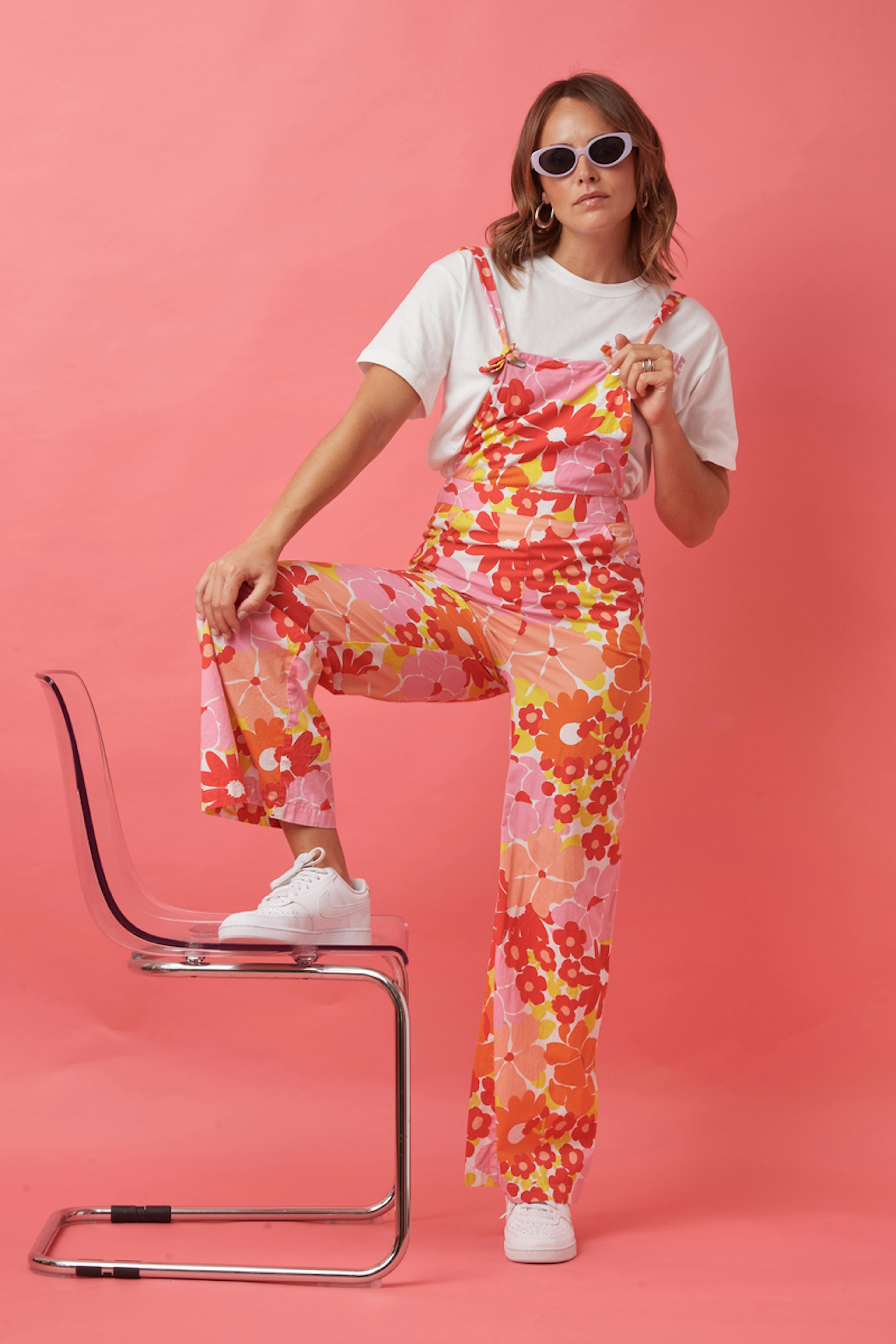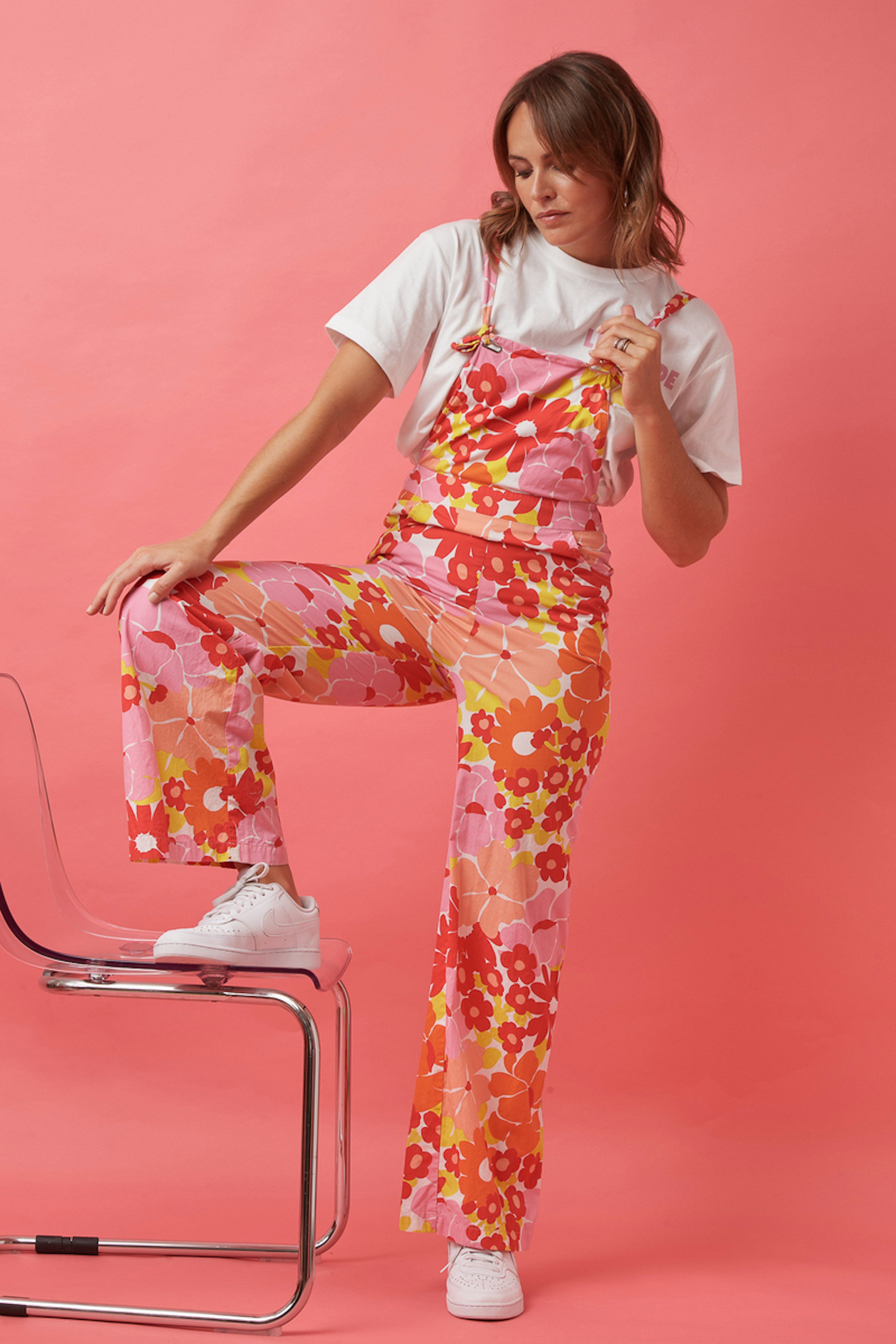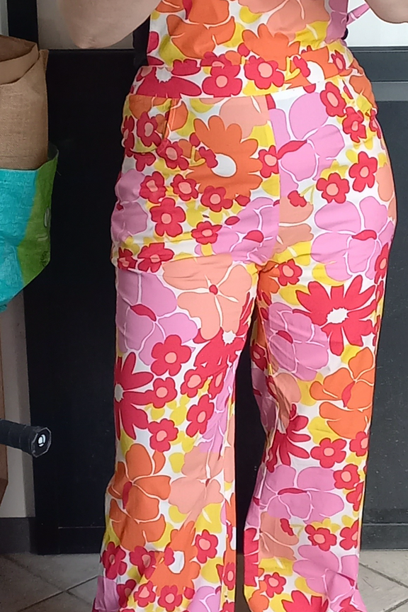 La salopette pattes d'eph dans son imprimรฉ exclusif, pour des jambes interminables ! โข Salopette esprit annรฉes 70 โข Zip sur le cรดtรฉ โข Imprimรฉ aux couleurs acidulรฉes