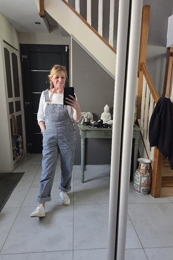 Ajoutez une touche de fraîcheur en l'associant avec un chemisier fluide pour les jours d'été décontractés. • Salopette en coton • Coupe droite • Bretelles ajustables • Poche poitrine pratique • Motif à rayures