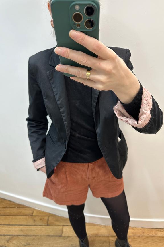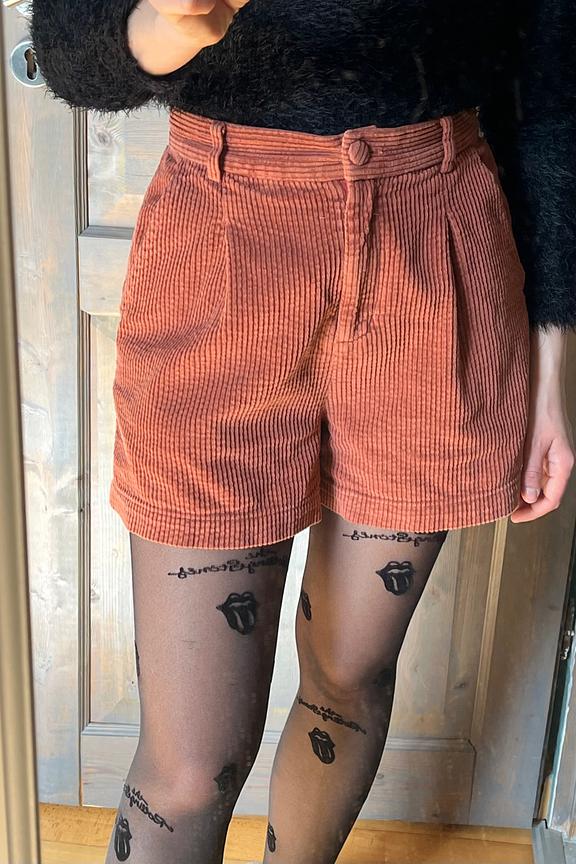 โข Short en velours cรดtelรฉ brique โข Ceinture ร la taille โข Conรงu en coton