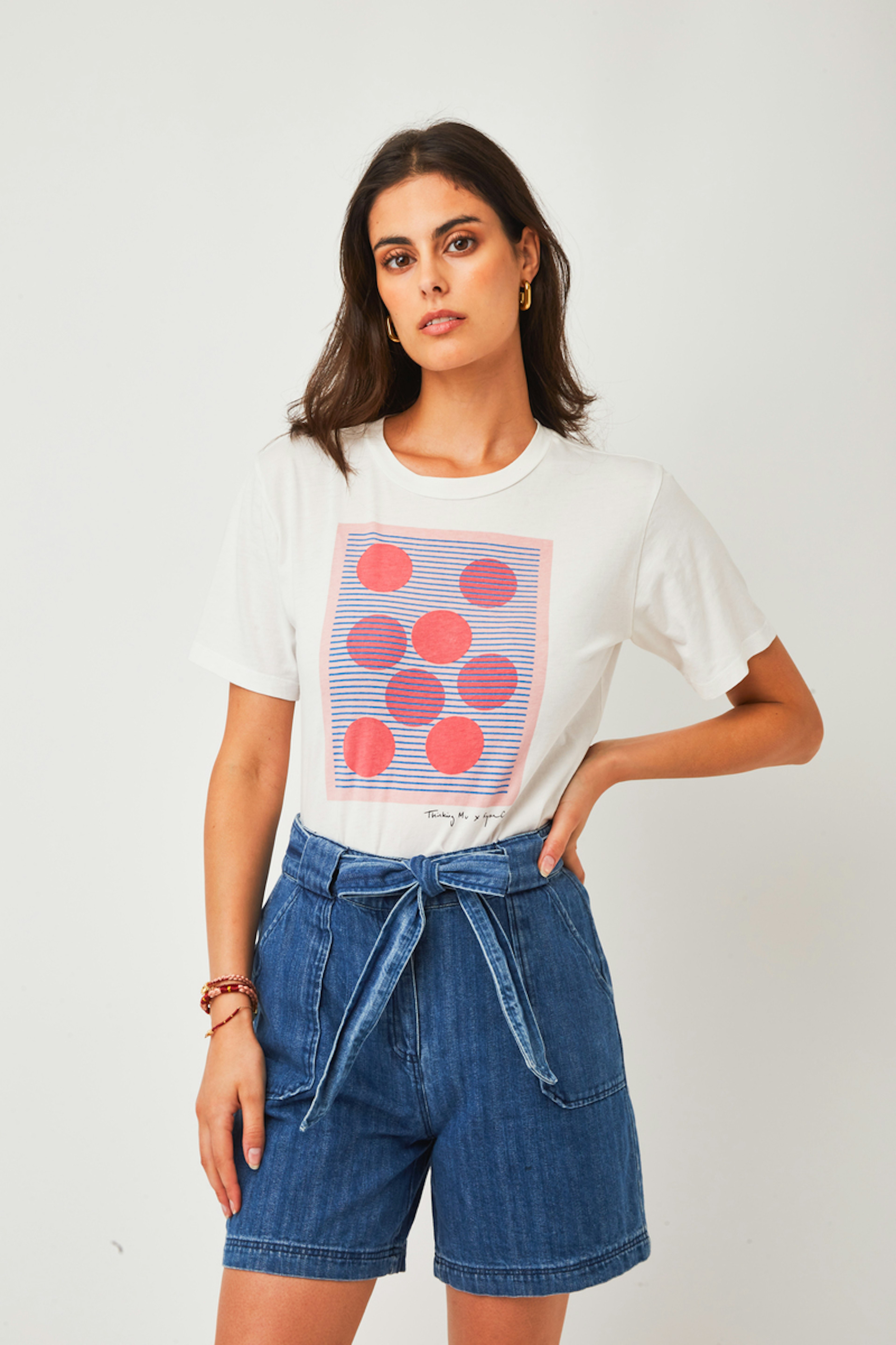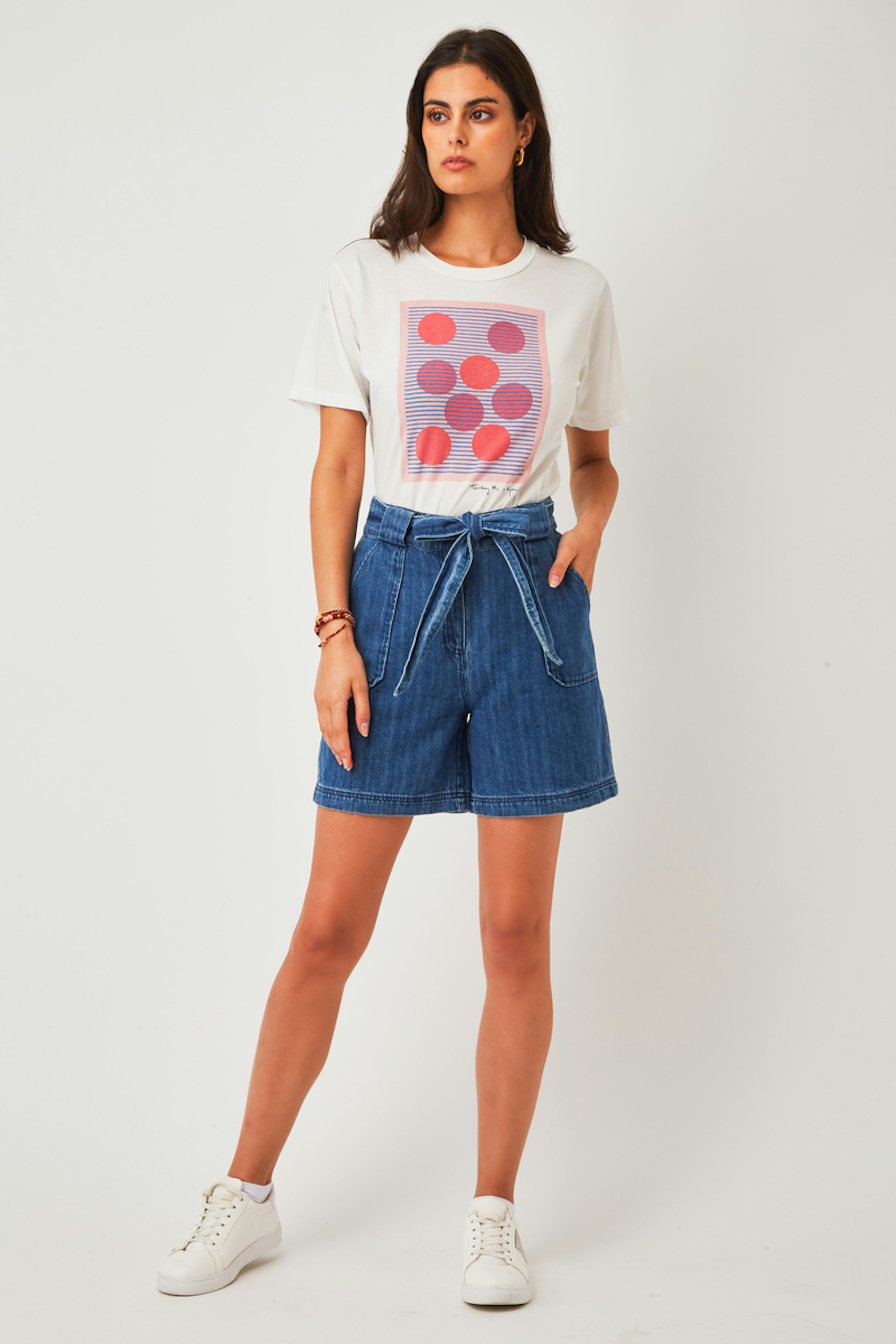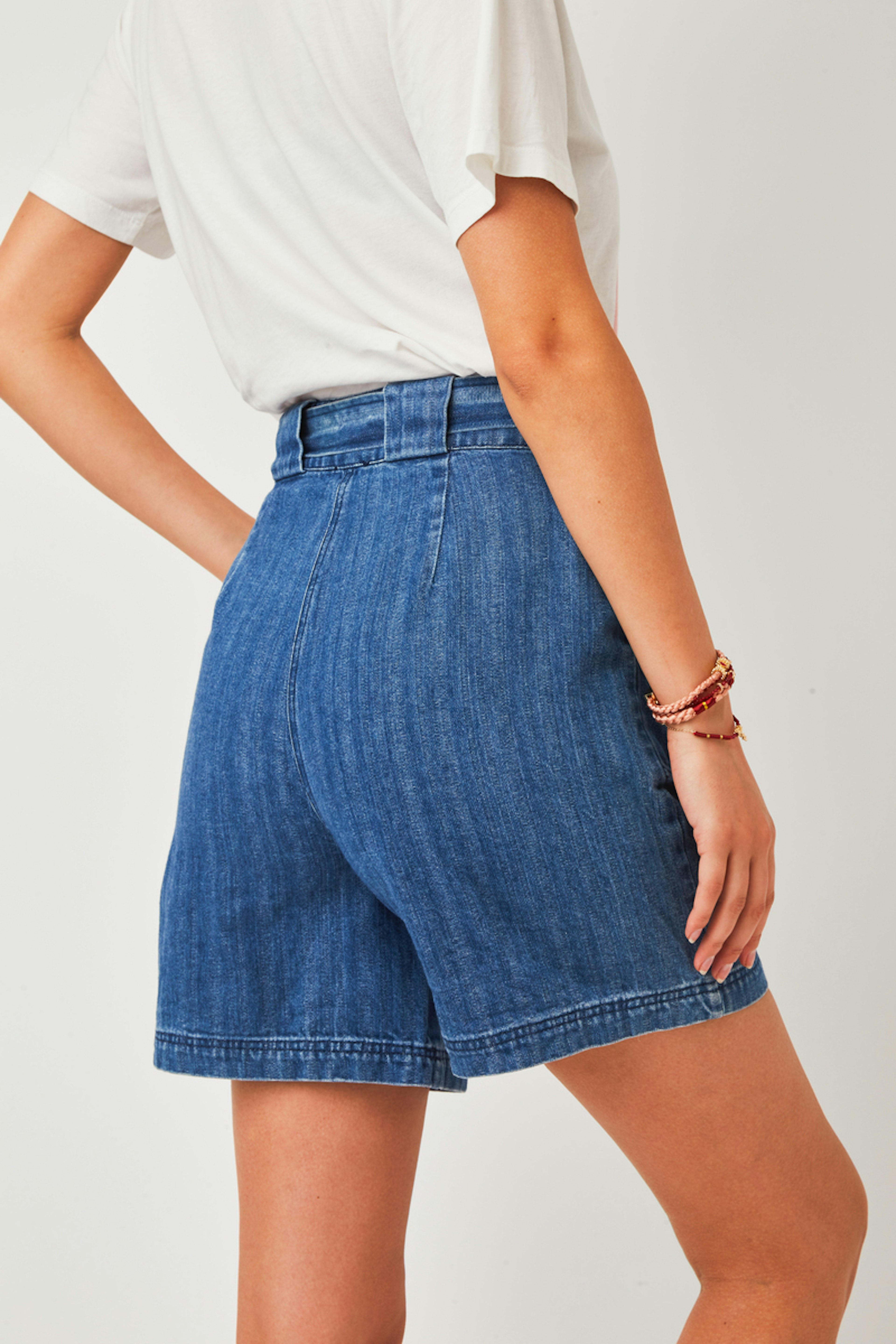 โข Short en denim taille mi-haute avec deux grandes poches plaquรฉes โข Passants et ceinture ร nouer dans la mรชme matiรจre โข Surpiqรปres sur le bas du short โข Modรจle confectionnรฉ dans un tissu 100% coton biologique