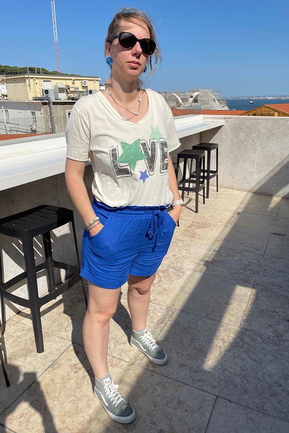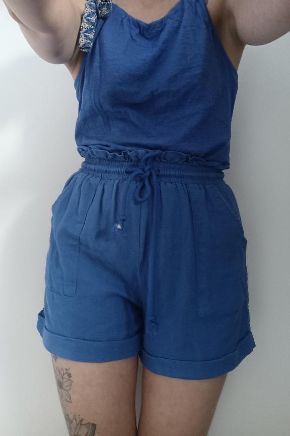โข Short bleu Andrea โข Elastiquรฉ ร la taille โข Poches ร l'avant