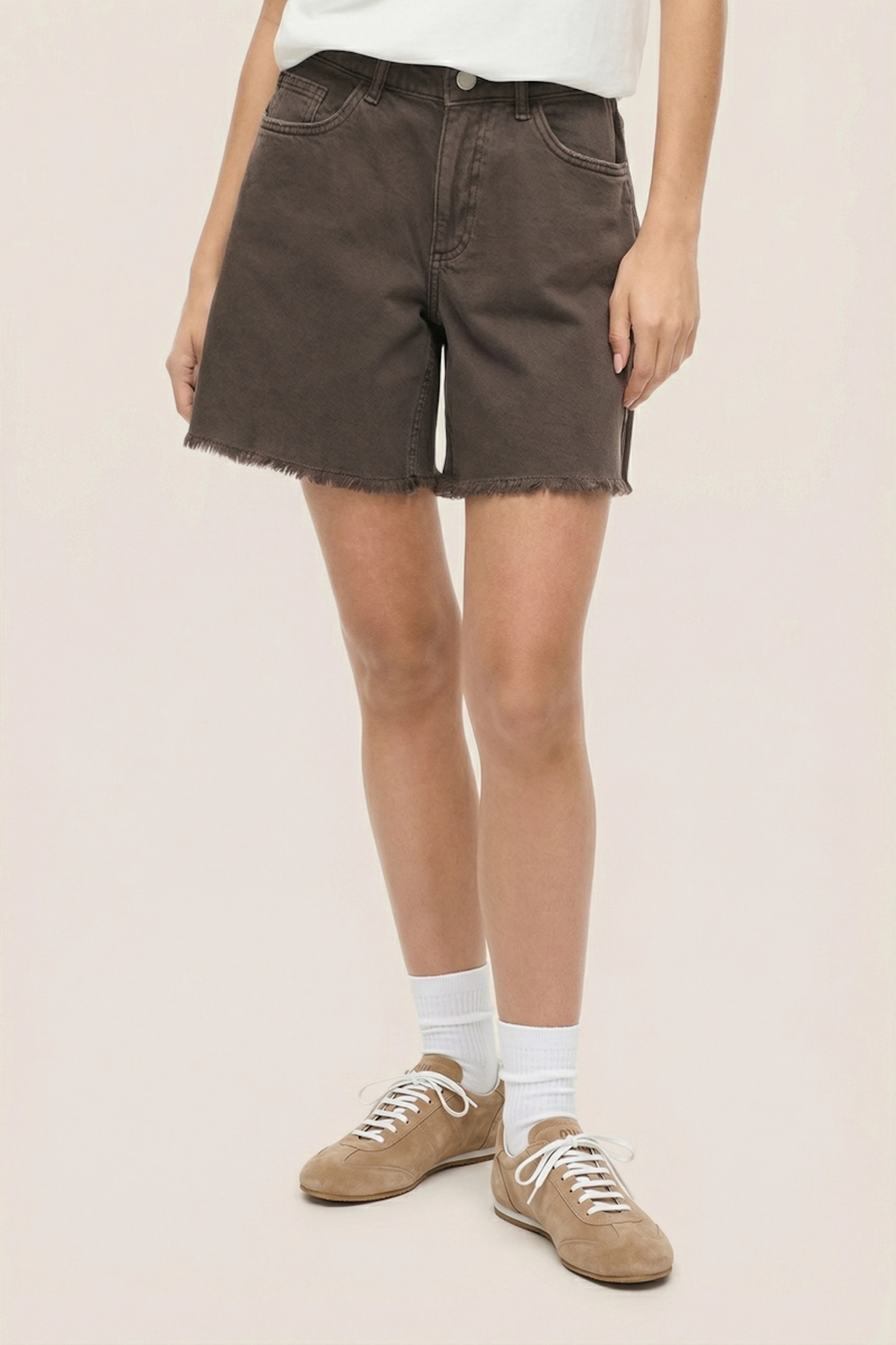 Associez ce short à un top fluide en soie et des sandales dorées pour une allure estivale chic. • Short en coton • Coupe droite • Taille mi-haute • Ourlets effilochés • Cinq poches classiques