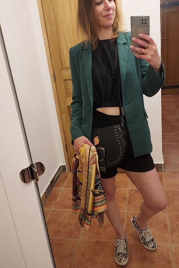 โข Short noir โข Ceinture ร nouer โข Pinces sur l'avant