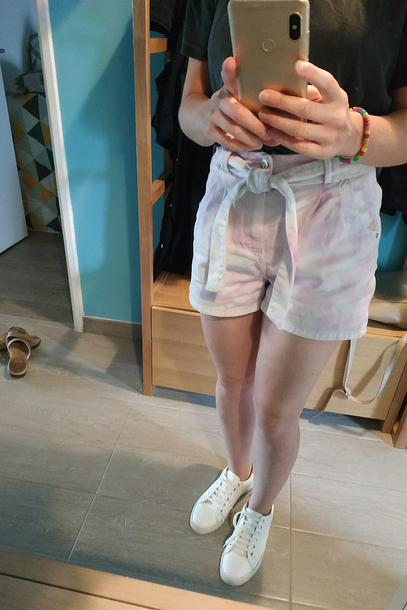 Associez ce short tie and dye avec un top uni et des sandales pour un look estival dรฉcontractรฉ, parfait pour les chaudes journรฉes d'รฉtรฉ ! โข Short en coton โข Taille avec ceinture โข Plissรฉ subtil โข Style tie and dye โข Coupe dรฉcontractรฉe