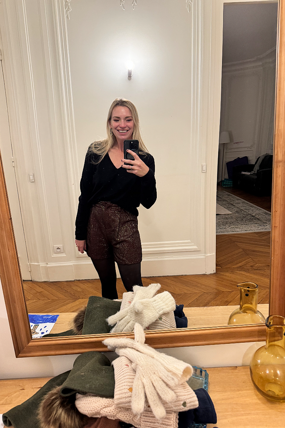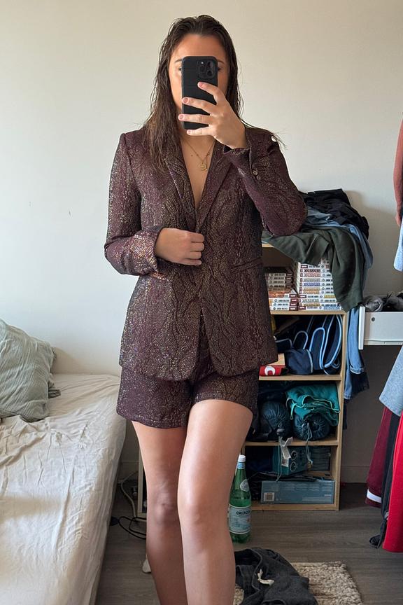 “Il est très brillant, sympa pour une fête. Joli porter avec la veste. Déçu par la coupe, trop large a l'entrée jambe!”