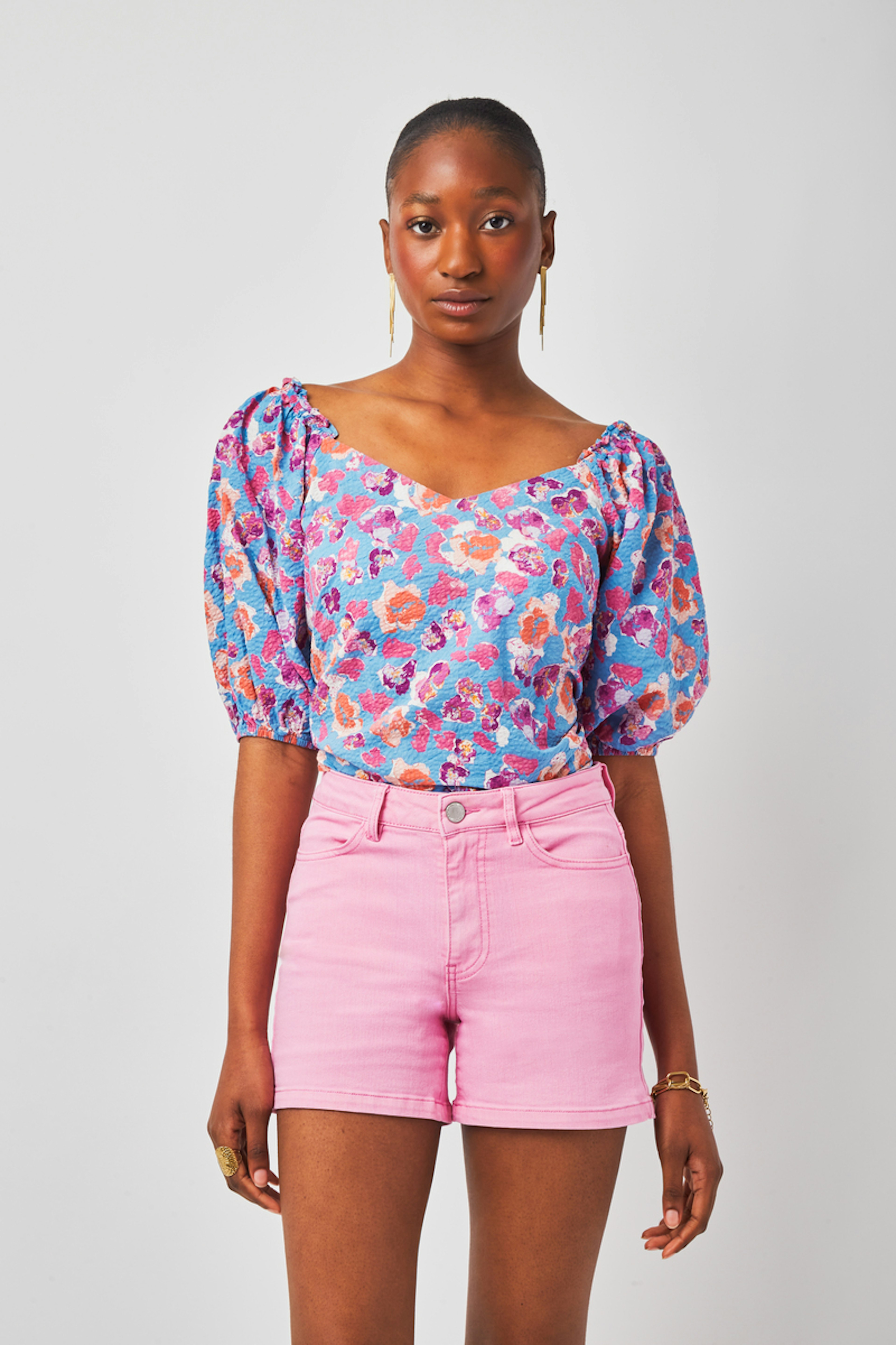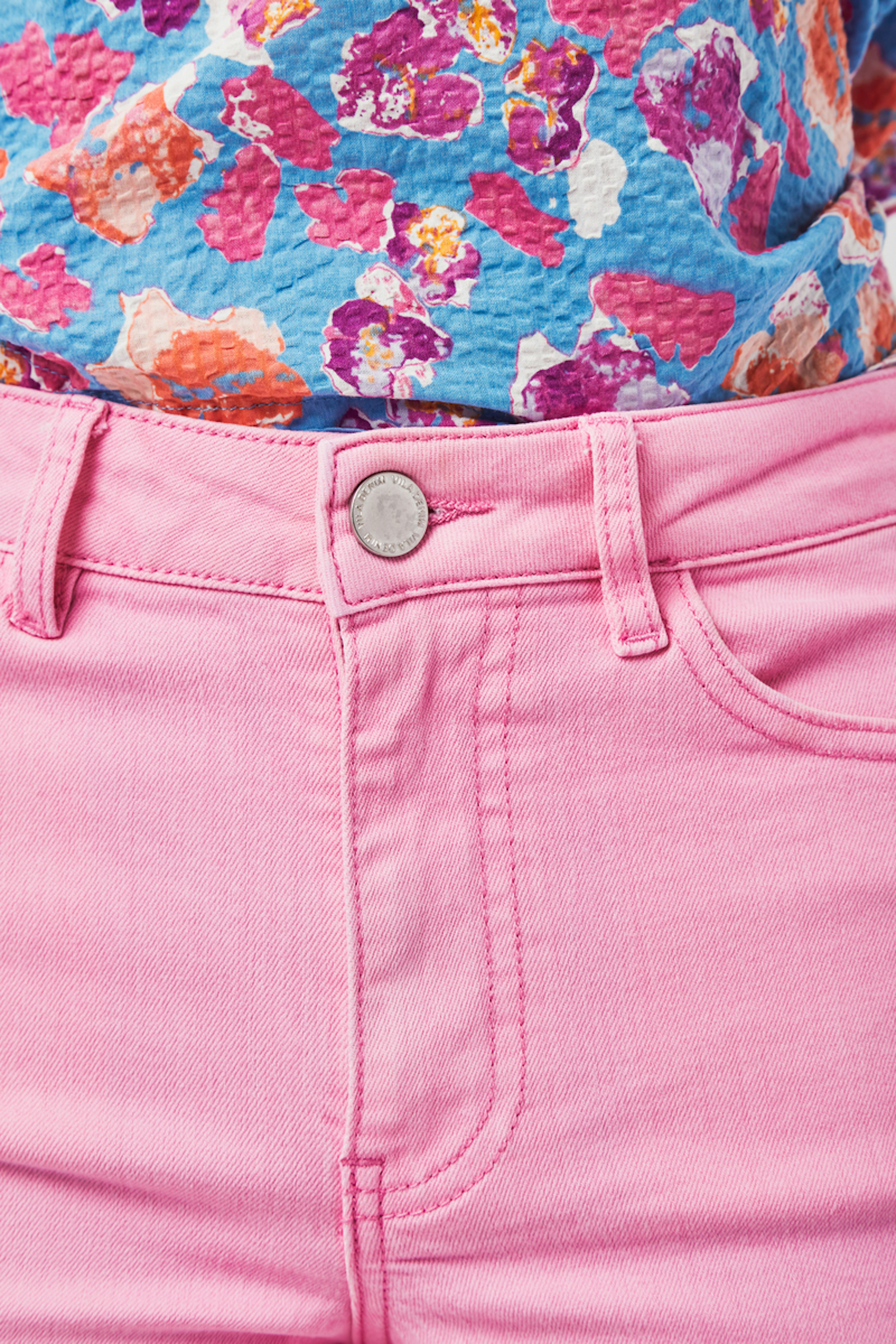 โข Short en denim โข Coloris rose bonbon โข 4 poches โข Braguette zippรฉe et boutonnรฉe โข Passants pour ceinture