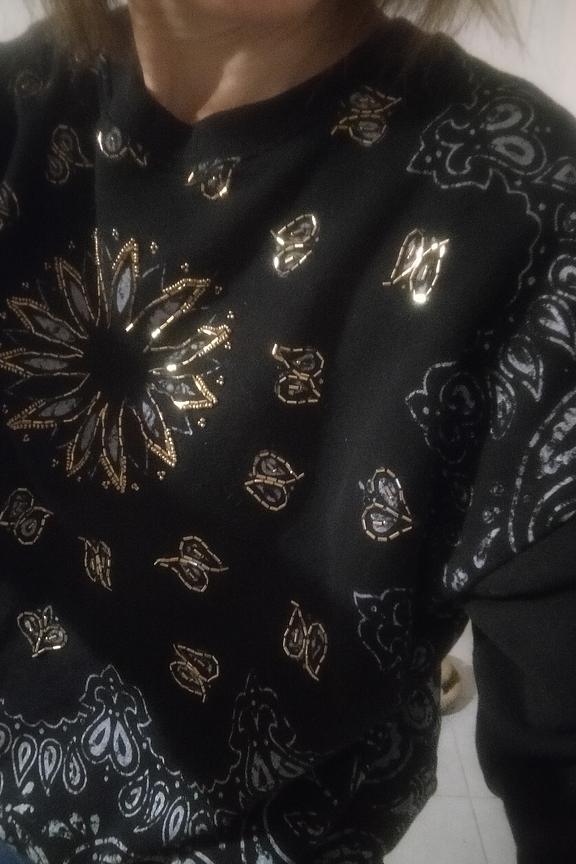 Ajoutez une jupe en denim pour un look chic et décontracté, parfait pour les journées d'hiver. • Sweat en coton • Coupe ample • Manches longues • Col rond • Motifs bandana à sequins