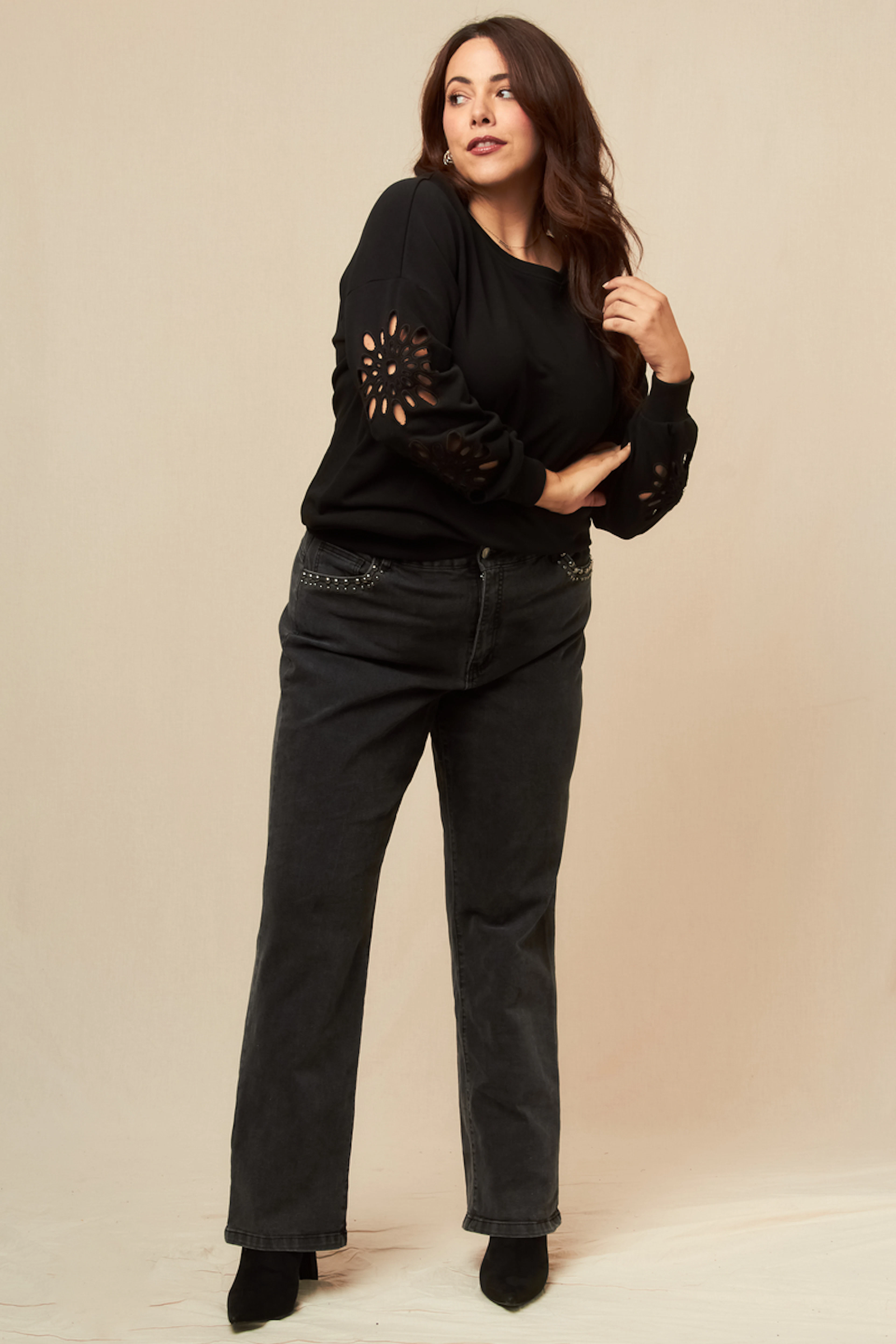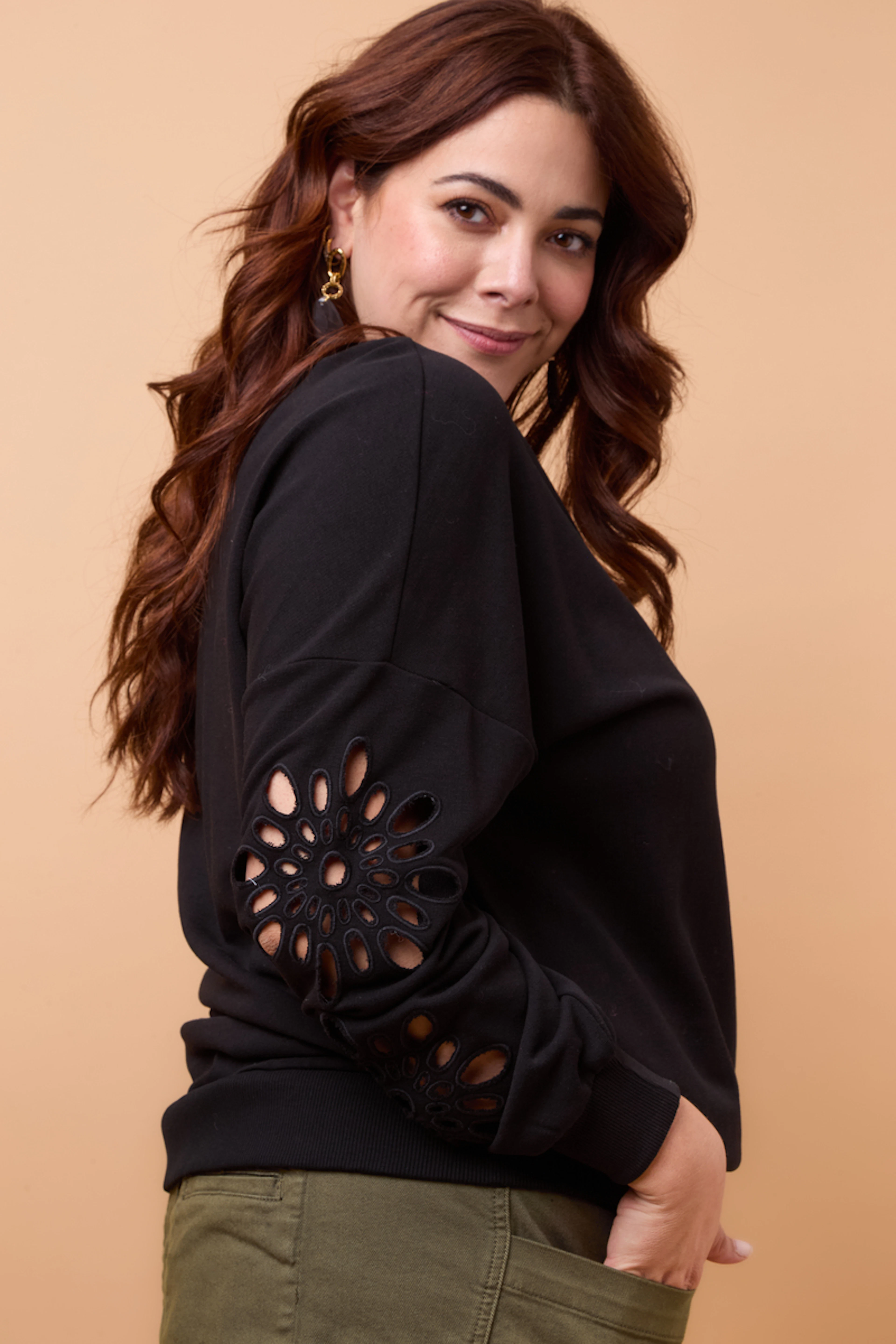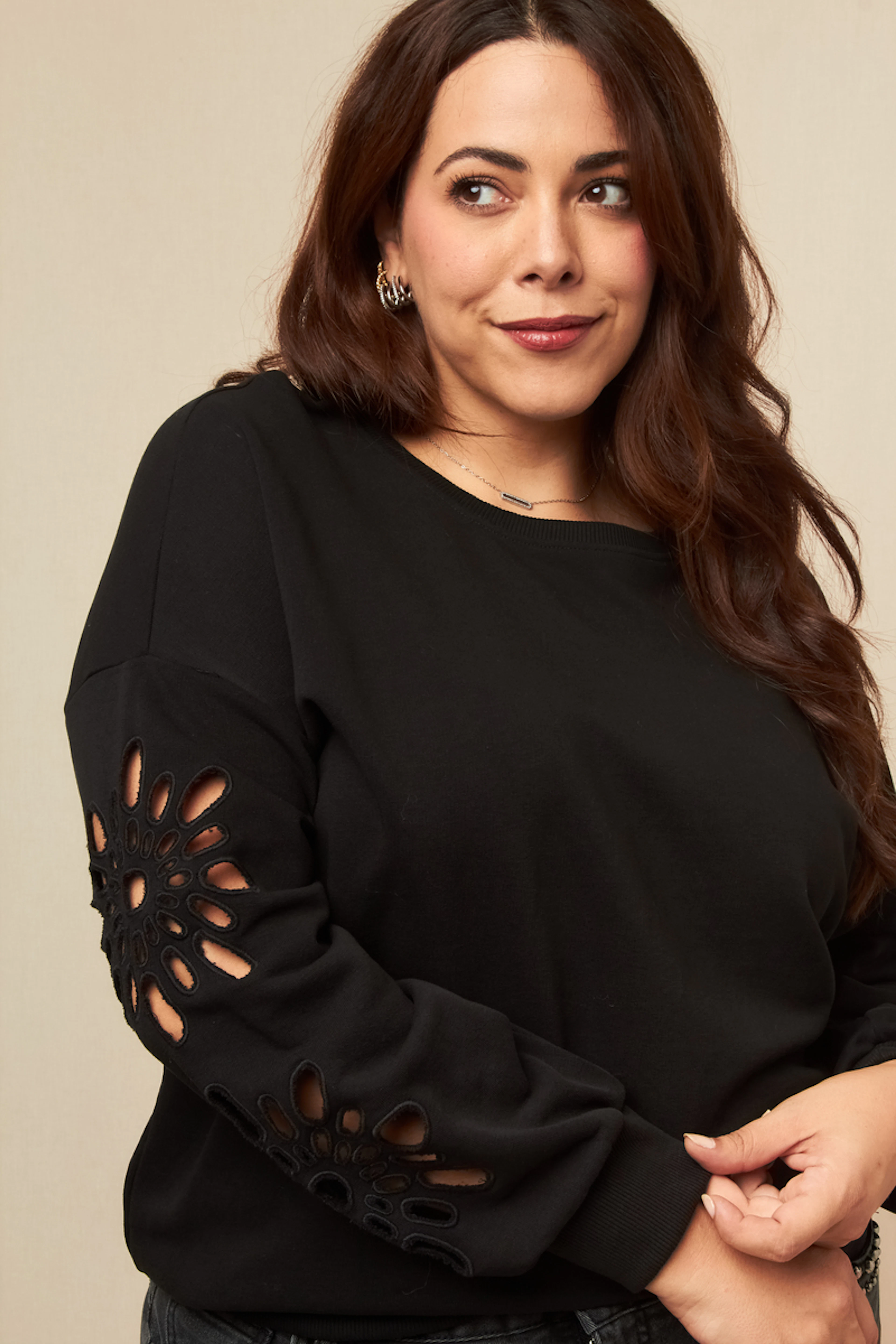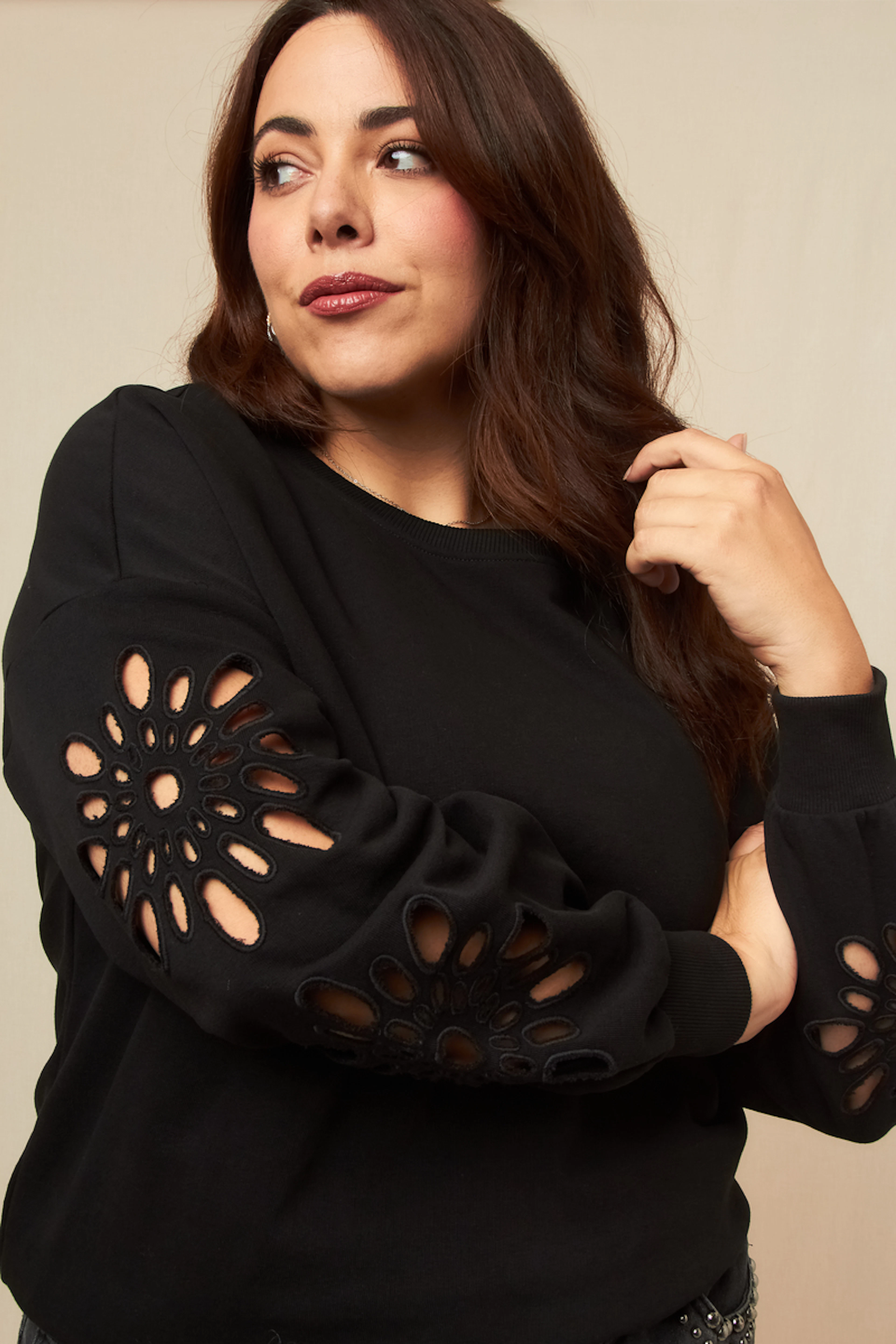 Associez ce sweat à un jean slim et des bottines pour un look casual chic et stylé, parfait pour braver le froid avec élégance. • Sweat en coton mélangé • Manches longues • Coupe décontractée • Découpes originales sur les manches • Finition côtelée à l'ourlet