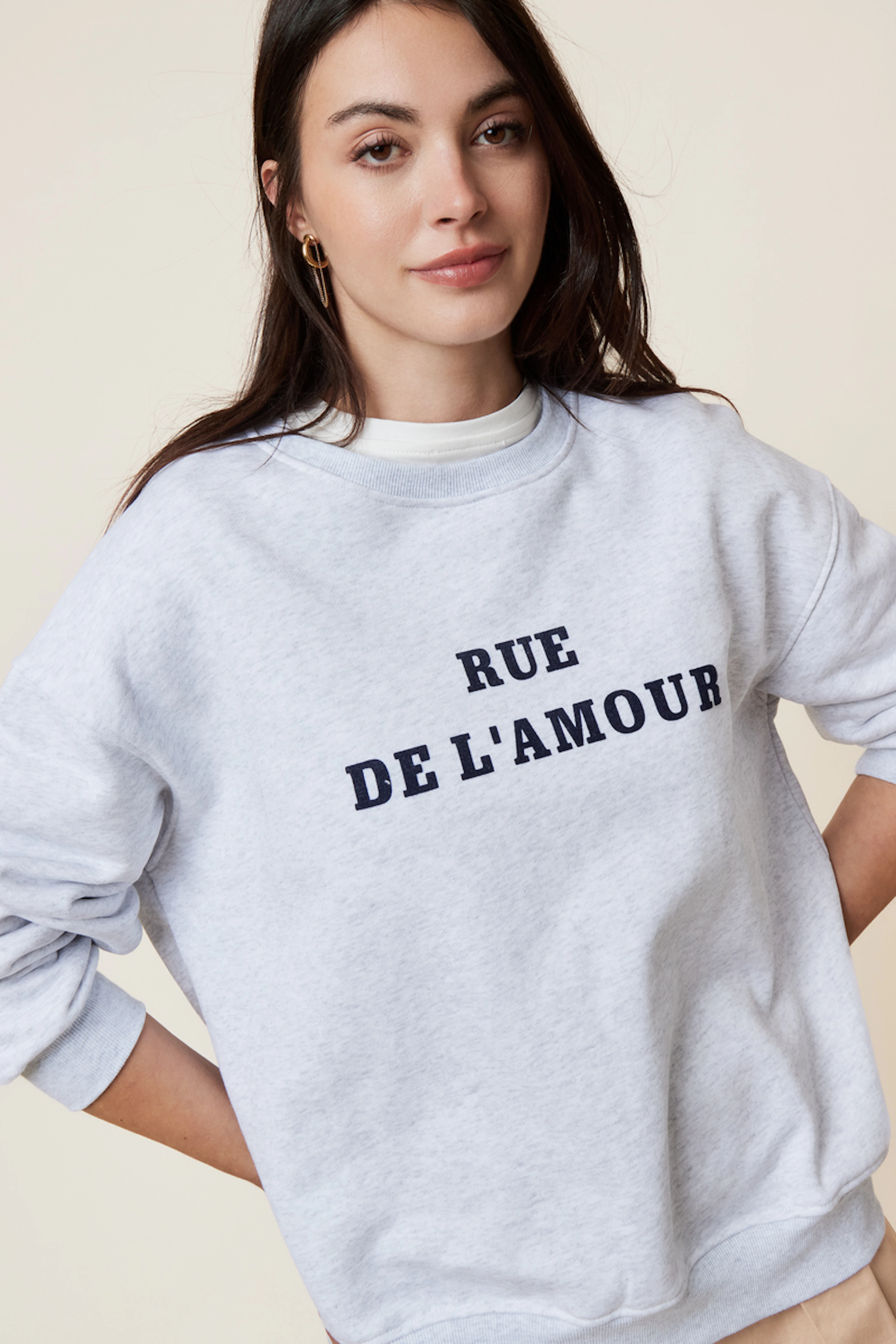 Ajoutez une touche décontractée et urbaine avec ce sweat pour vos journées cocooning. Associez-le à une jupe en jean et des sneakers pour un look casual chic d'hiver. • Sweat 100% coton • Coupe classique • Manches longues • Encolure arrondie • Motif "Rue de l'amour"