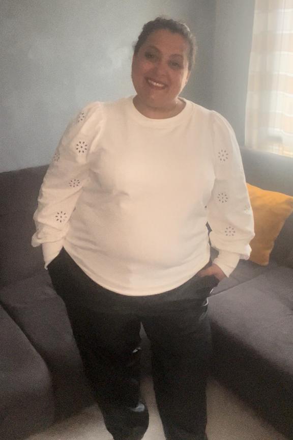 Adoptez un look chic et dรฉcontractรฉ avec ce sweat Only Carmakoma, parfait pour une journรฉe printaniรจre ! Associez-le ร un jean slim et des baskets blanches pour une allure sans effort. โข Sweat en coton โข Manches bouffantes ajourรฉes โข Broderie dรฉlicate sur les manches