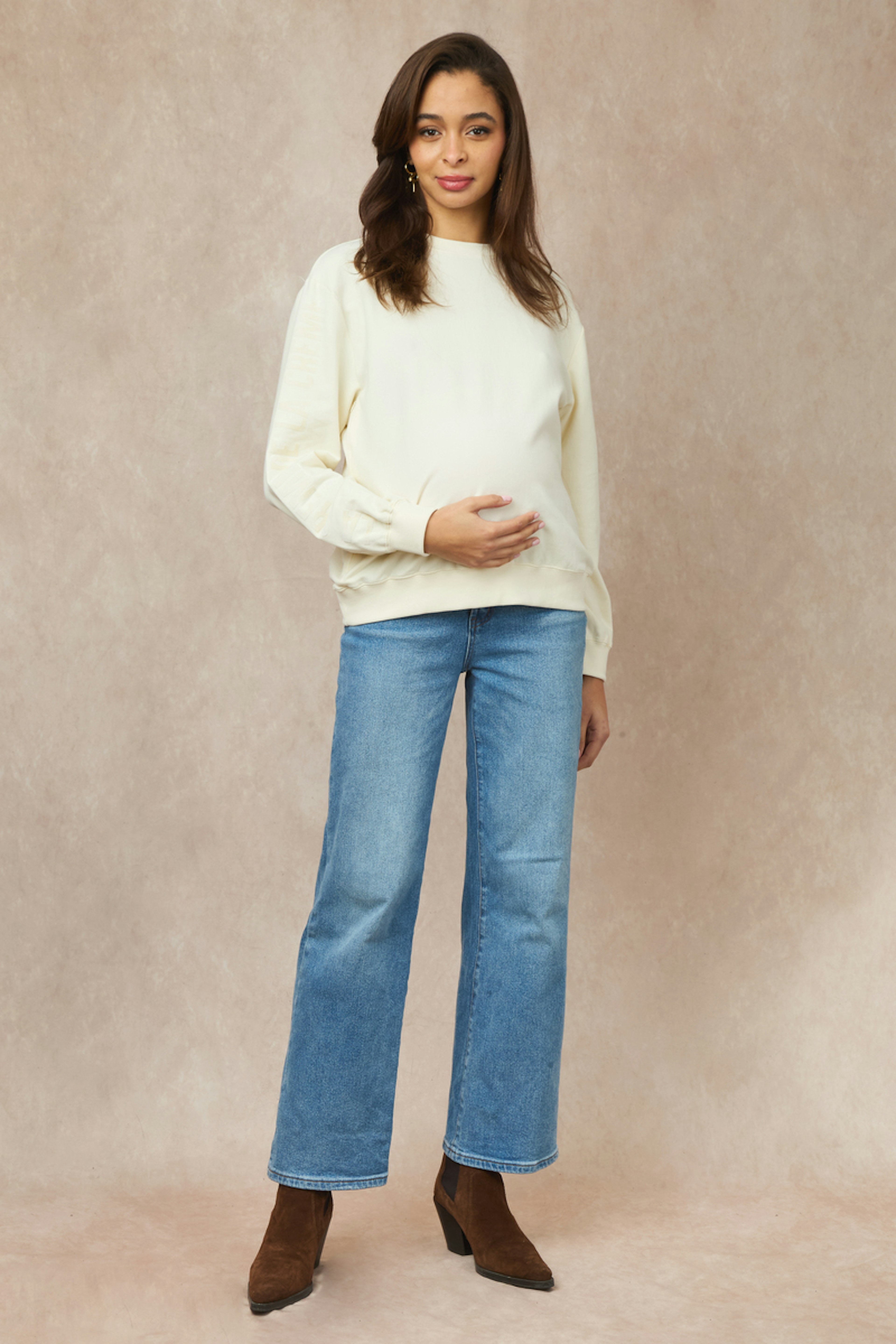 Associez-le à un jean bootcut et des bottes pour un look décontracté et chic cet hiver. • Sweat en coton • Coupe ample • Manches longues • Col rond • Zips latéraux invisibles
