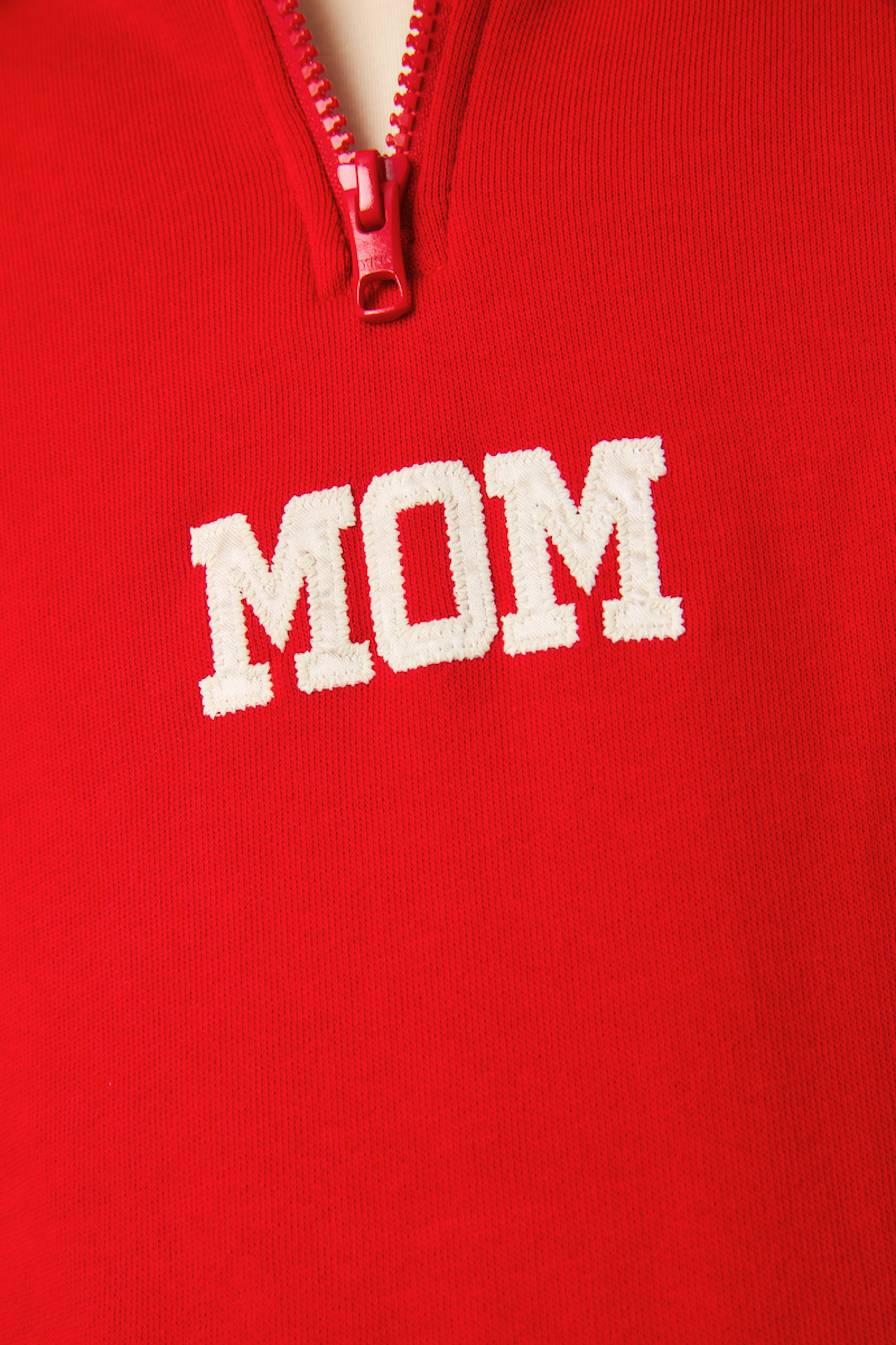 Portez ce sweat à capuche avec un jean brut et des baskets blanches pour une allure décontractée chic, parfait pour l'hiver. • Sweat en coton • Coupe ajustée • Fermeture demi-zip • Ourlet et poignets côtelés • Motif "MOM" brodé