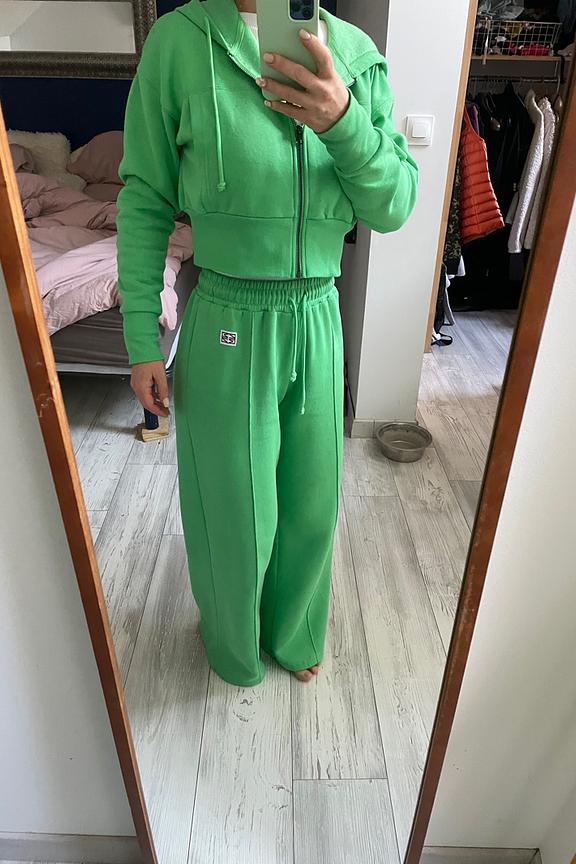 Associez ce sweat vert à un jean taille haute et des baskets blanches pour un look décontracté et tendance cet hiver. • Sweat a capuche court vert • Capuche pratique • Fermeture éclair frontale • Poches kangourou • Détails côtelés