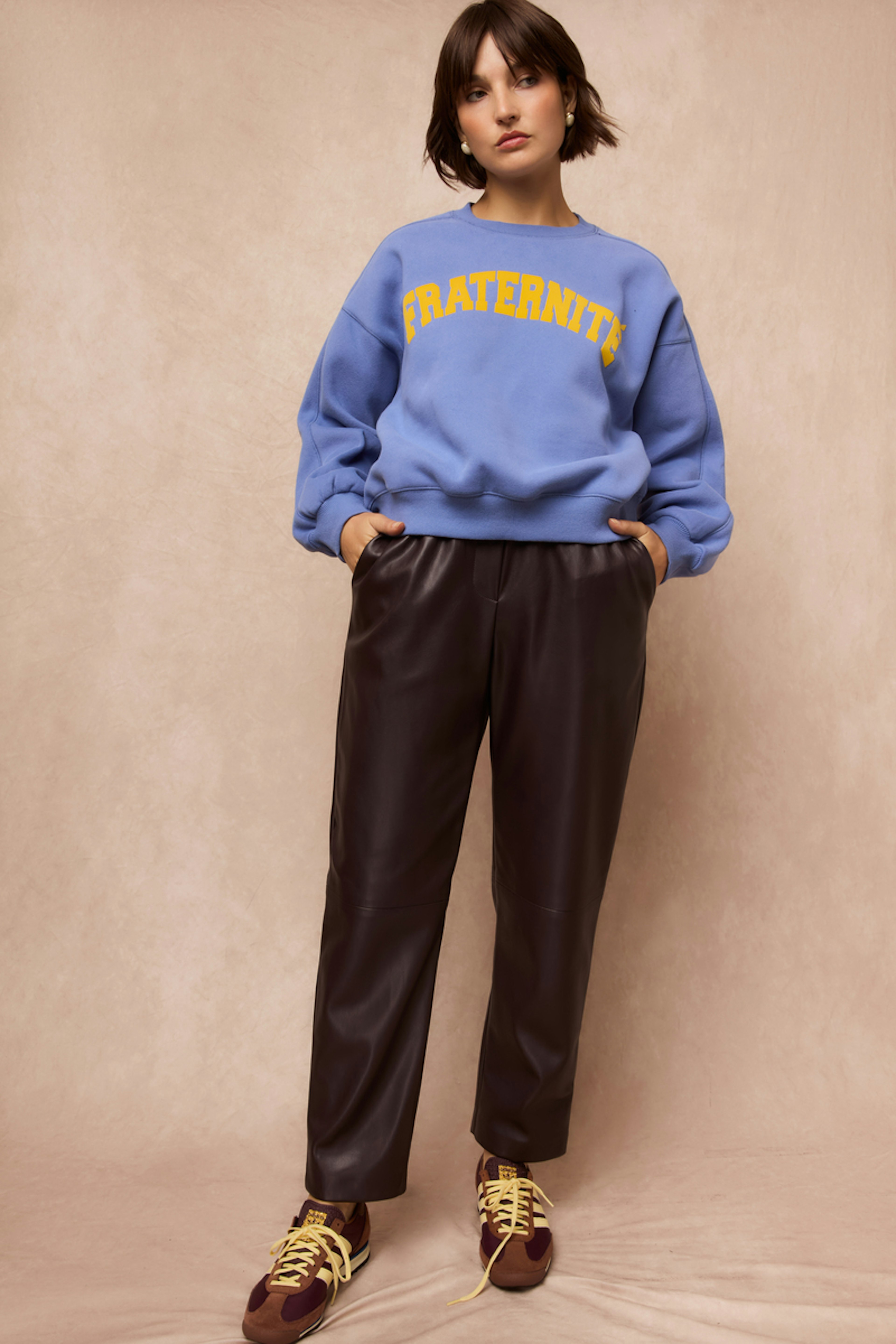 Portez-le avec un pantalon en cuir pour un look moderne et urbain. Parfait pour une touche de style en toute saison! • Sweat confortable • Coupe oversize • Manches longues • Col rond • Motif texte frontal