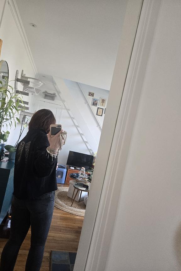 “Un peu court sur les manches mais très joli sur le dos (paillettes argent et noir)”