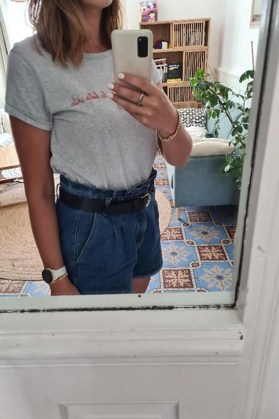 โข T-shirt gris avec broderie "c'est la vie" โข Jersey 100% coton biologique certifiรฉ GOTS โข Coupe droite lรฉgรจrement ajustรฉe โข Finition encolure finie avec un colletage en bord-cรดte โข Finitions manches roulottรฉes โข Fabriquรฉ au Portugal