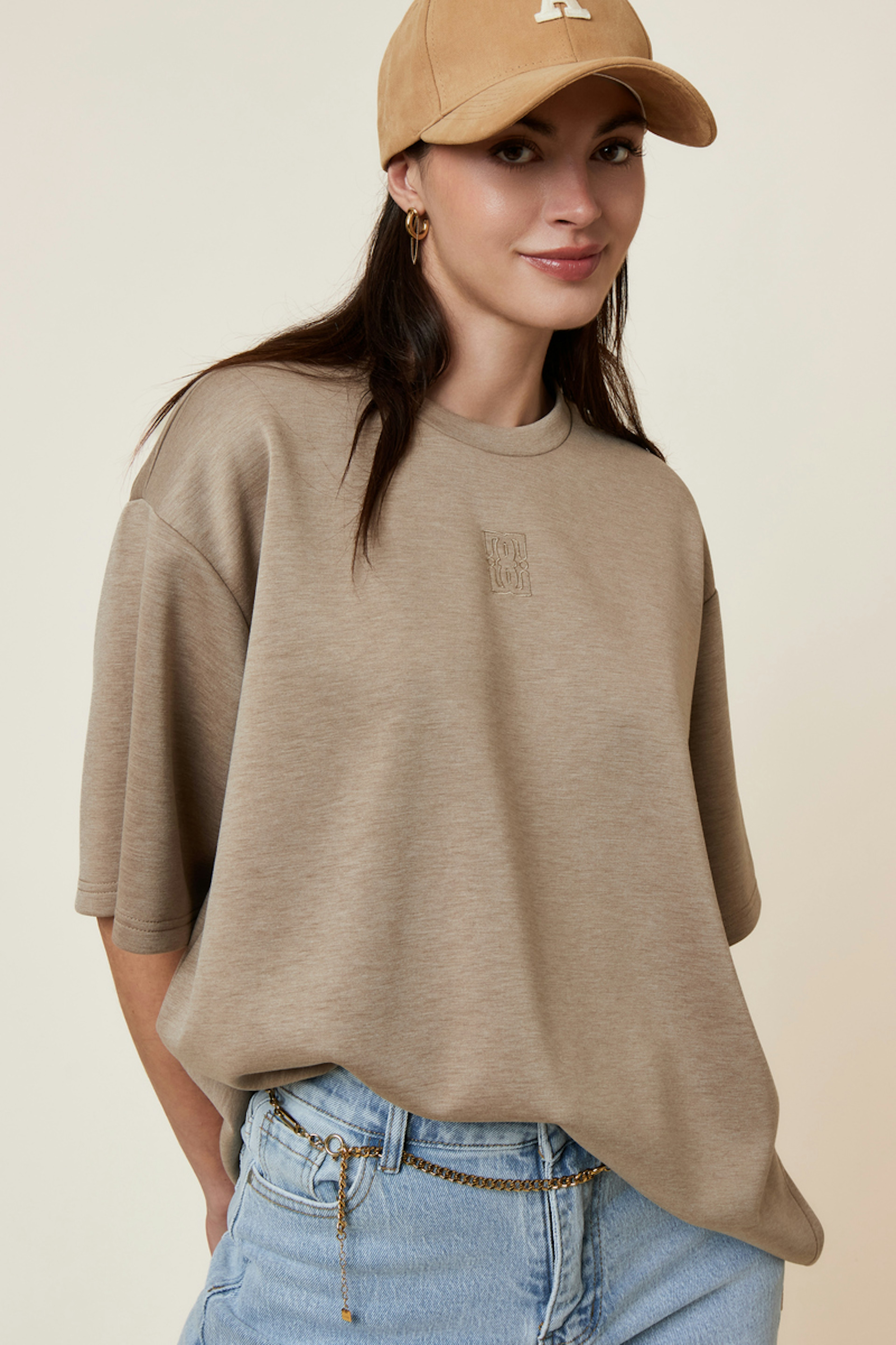 Associez ce t-shirt avec un short en jean et des sandales pour un look estival décontracté. • T-shirt ample • Coupe décontractée • Manches courtes • Encolure ronde • Logo discret brodé sur la poitrine